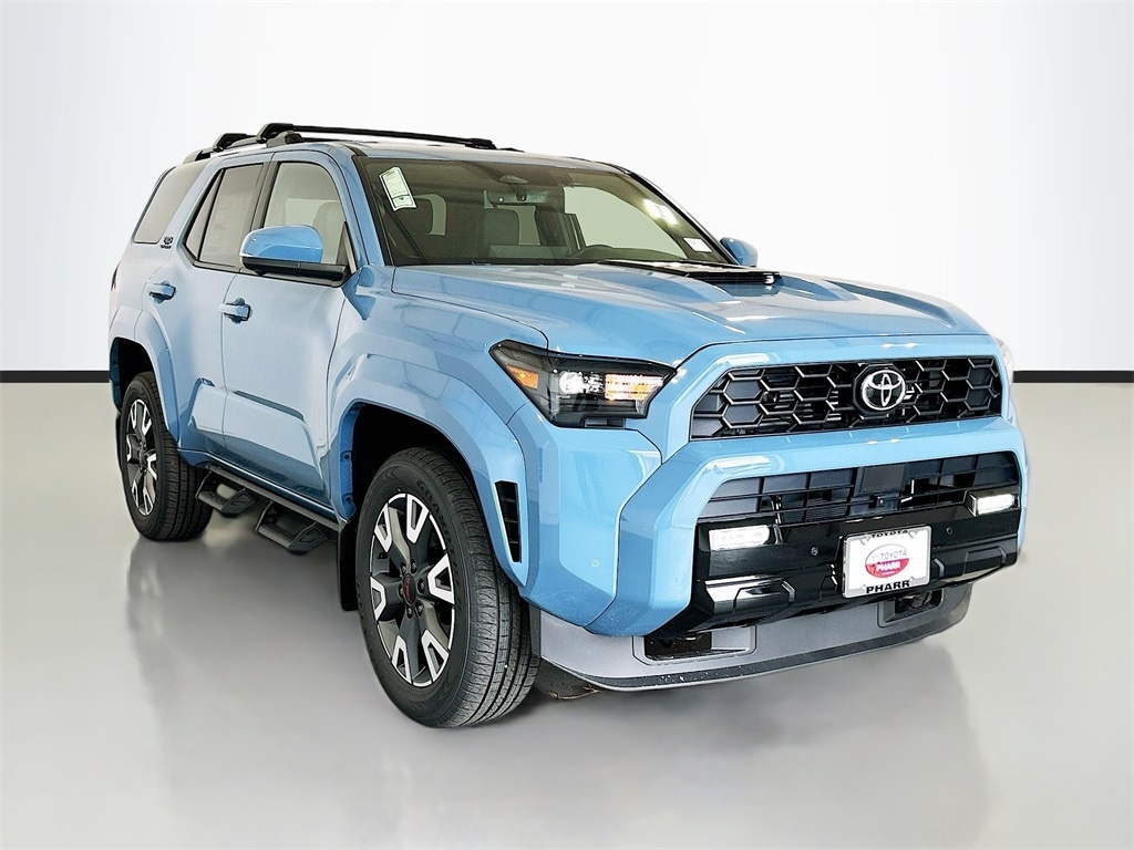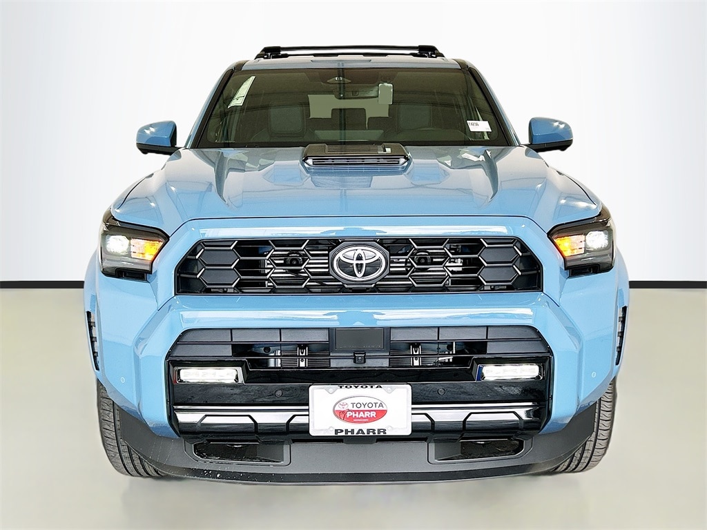 2025 Toyota 4Runner Heritage Blue 4WD TRD Sport 8-Speed Automatic 2.4L 4-Cylinder 4WD, Black Artificial Leather, 15 Speakers, 4-Wheel Disc Brakes, ABS brakes, Air Conditioning, Alloy wheels, AM/FM radio: SiriusXM, Anti-whiplash front head restraints, Apple CarPlay/Android Auto, Auto High-beam Headlights, Automatic temperature control, Brake assist, Bumpers: body-color, Driver door bin, Driver vanity mirror, Dual front impact airbags, Dual front side impact airbags, Electronic Stability Control, Emergency communication system: Safety Connect (1-year trial), Exterior Parking Camera Rear, Front & Rear Molded Black 4Runner Mudguards (TMS), Front anti-roll bar, Front Bucket Seats, Front Center Armrest, Front dual zone A/C, Front fog lights, Front reading lights, Front wheel independent suspension, Heated & Ventilated Front Bucket Seats, Heated door mirrors, Heated front seats, Illuminated entry, Intelligent Inside Rear View Mirror, Interior D-Pillar Cargo Lights (TMS), Knee airbag, Leather Shift Knob, Leather steering wheel, Low tire pressure warning, Memory seat, Navigation System, Occupant sensing airbag, Outside temperature display, Overhead airbag, Overhead console, Panic alarm, Passenger door bin, Passenger vanity mirror, Power door mirrors, Power driver seat, Power passenger seat, Power steering, Power windows, Radio: 14" Audio, Rear anti-roll bar, Rear seat center armrest, Rear side impact airbag, Rear window defroster, Rear window wiper, Remote keyless entry, Security system, SofTex Seat Trim, Speed control, Speed-sensing steering, Split folding rear seat, Spoiler, Steering wheel mounted audio controls, Tachometer, Telescoping steering wheel, Tilt steering wheel, Traction control, TRD Cast Aluminum Black Side Steps (TMS), TRD Sport Premium, Trip computer, Variably intermittent wipers, Ventilated front seats, Wheels: 20" Dark-Gray Painted Alloy, 4WD, Black Artificial Leather.