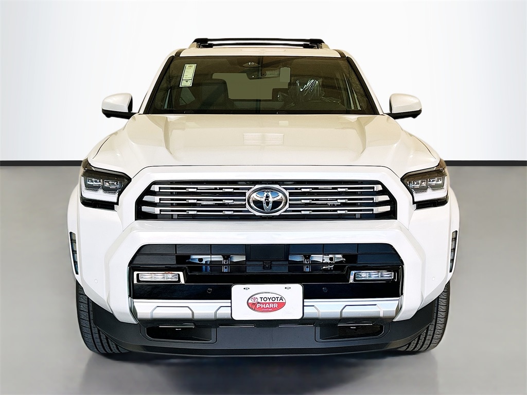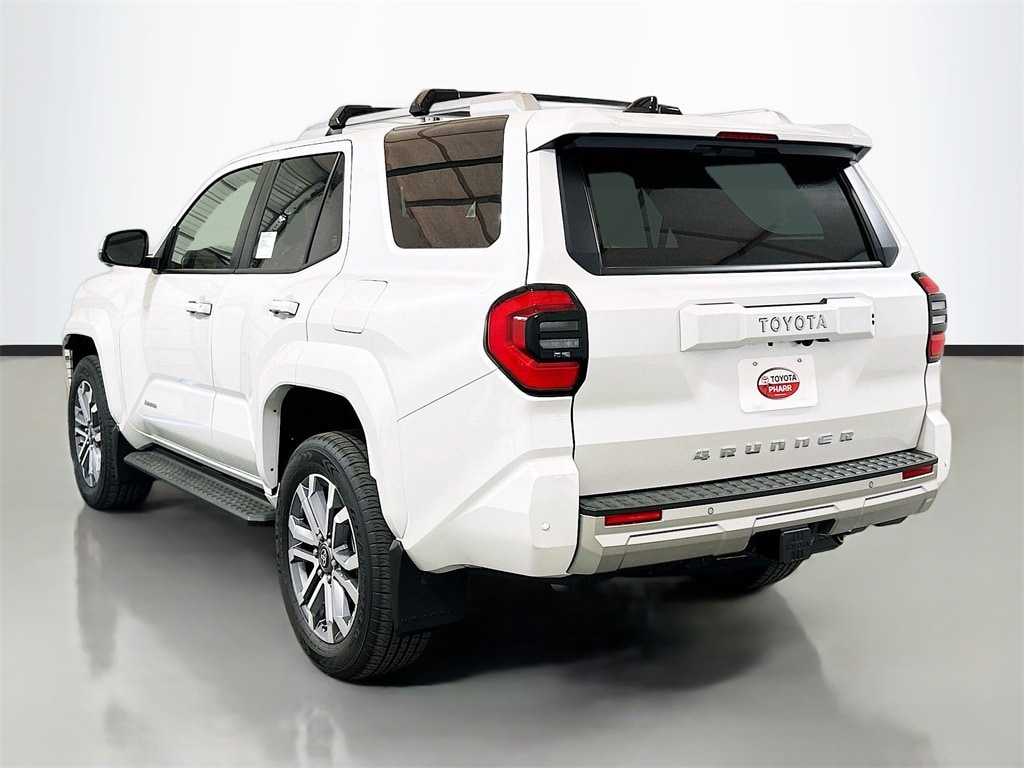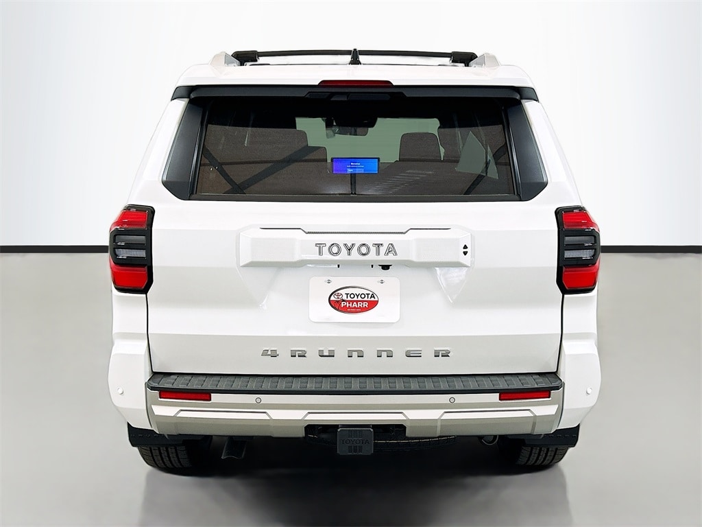 2025 Toyota 4Runner Wind Chill Pearl RWD Limited 8-Speed Automatic 2.4L 4-Cylinder Black Leather, 15 Speakers, 4-Wheel Disc Brakes, ABS brakes, Air Conditioning, Alloy wheels, AM/FM radio: SiriusXM, Anti-whiplash front head restraints, Apple CarPlay/Android Auto, Auto High-beam Headlights, Auto-dimming Rear-View mirror, Automatic temperature control, Brake assist, Bumpers: body-color, Compass, Delay-off headlights, Digital Key, Driver door bin, Driver vanity mirror, Dual front impact airbags, Dual front side impact airbags, Electronic Stability Control, Emergency communication system: Safety Connect (1-year trial), Exterior Parking Camera Rear, Front & Rear Molded Black 4Runner Mudguards (TMS), Front anti-roll bar, Front Bucket Seats, Front Center Armrest, Front dual zone A/C, Front fog lights, Front reading lights, Front wheel independent suspension, Fully automatic headlights, Heated & Ventilated Front Bucket Seats, Heated door mirrors, Heated front seats, Illuminated entry, Intelligent Inside Rear View Mirror, Interior D-Pillar Cargo Lights (TMS), Knee airbag, Leather Seat Trim, Leather Shift Knob, Leather steering wheel, LED Liftgate Light, Limited, Low tire pressure warning, Memory seat, Moonroof, Navigation System, Occupant sensing airbag, Outside temperature display, Overhead airbag, Overhead console, Panic alarm, Passenger door bin, Passenger vanity mirror, Power door mirrors, Power driver seat, Power passenger seat, Power steering, Power windows, Radio: 14" Audio, Rear anti-roll bar, Rear seat center armrest, Rear side impact airbag, Rear window defroster, Rear window wiper, Remote keyless entry, Security system, Speed control, Speed-sensing steering, Split folding rear seat, Spoiler, Steering wheel mounted audio controls, Tachometer, Telescoping steering wheel, Tilt steering wheel, Traction control, Trip computer, Turn signal indicator mirrors, Variably intermittent wipers, Ventilated front seats, Wheels: 20" Gray Painted Alloy, Black Leather.