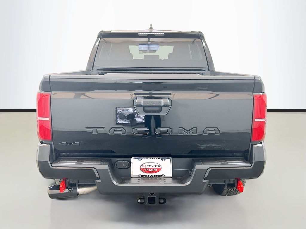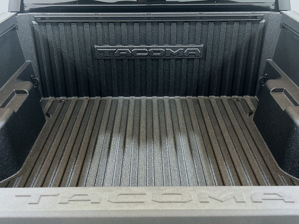 2025 Toyota Tacoma Black 4WD TRD Off-Road 8-Speed Automatic 2.4L 4-Cylinder 4WD, 3.583 Axle Ratio, 4-Wheel Disc Brakes, 6 Speakers, ABS brakes, Air Conditioning, Alloy wheels, AM/FM radio: SiriusXM, Anti-whiplash front head restraints, Apple CarPlay/Android Auto, Auto High-beam Headlights, Auto-dimming Rear-View mirror, Automatic temperature control, Bed Scene Lighting (TMS), Black Chrome Exhaust Tip (TMS), Brake assist, Bumpers: body-color, Driver door bin, Driver vanity mirror, Dual front impact airbags, Dual front side impact airbags, Electronic Stability Control, Emergency communication system: Safety Connect (1-year trial), Exterior Parking Camera Rear, Fabric Seat Trim, Four wheel independent suspension, Front anti-roll bar, Front Bucket Seats, Front Center Armrest, Front fog lights, Front reading lights, Fully automatic headlights, Heated door mirrors, Illuminated entry, Knee airbag, Leather Shift Knob, Leather steering wheel, Low tire pressure warning, Occupant sensing airbag, Outside temperature display, Overhead airbag, Overhead console, Panic alarm, Passenger door bin, Passenger vanity mirror, Power door mirrors, Power steering, Power windows, Predator Step (TMS), Radio: 8" Toyota Audio Multimedia, Rear step bumper, Rear window defroster, Remote keyless entry, Security system, Speed control, Speed-sensing steering, Split folding rear seat, Spray-On Bed Liner (TMS), Steering wheel mounted audio controls, Tachometer, Telescoping steering wheel, Tilt steering wheel, Traction control, Trip computer, Turn signal indicator mirrors, Variably intermittent wipers, Wheels: 17" TRD Off-Road Alloy, 4WD.