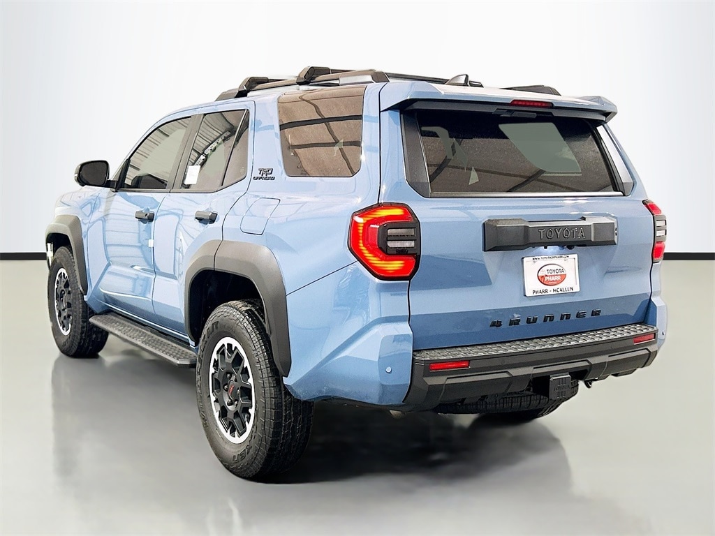 2026 Toyota 4Runner Heritage Blue 4WD TRD Off-Road Premium 8-Speed Automatic 2.4L 4-Cylinder 4WD, Black Artificial Leather, 15 Speakers, 4-Wheel Disc Brakes, ABS brakes, Air Conditioning, Alloy wheels, AM/FM radio: SiriusXM, Anti-whiplash front head restraints, Apple CarPlay/Android Auto, Auto High-beam Headlights, Auto-dimming Rear-View mirror, Automatic temperature control, Brake assist, Bumpers: body-color, Compass, Driver door bin, Driver vanity mirror, Dual front impact airbags, Dual front side impact airbags, Electronic Stability Control, Emergency communication system: Safety Connect (1-year trial), Exterior Parking Camera Rear, Front and Rear Molded Black 4Runner Mudguards, Front anti-roll bar, Front Bucket Seats, Front Center Armrest, Front dual zone A/C, Front fog lights, Front reading lights, Front wheel independent suspension, Heated and Ventilated Front Bucket Seats, Heated door mirrors, Heated front seats, Heated steering wheel, Illuminated entry, Interior D-Pillar Cargo Lights, Knee airbag, Leather Shift Knob, Leather steering wheel, Low tire pressure warning, Memory seat, Moonroof, Navigation System, Occupant sensing airbag, Outside temperature display, Overhead airbag, Overhead console, Panic alarm, Passenger door bin, Passenger vanity mirror, Power door mirrors, Power driver seat, Power passenger seat, Power steering, Power windows, Radio: 14" Audio, Rear anti-roll bar, Rear seat center armrest, Rear side impact airbag, Rear window defroster, Rear window wiper, Remote keyless entry, Security system, SofTex Seat Trim, Speed control, Speed-sensing steering, Split folding rear seat, Spoiler, Steering wheel mounted audio controls, Tachometer, Telescoping steering wheel, Tilt steering wheel, Tow Technology Package, Traction control, TRD Offroad Premium, Trip computer, Turn signal indicator mirrors, Variably intermittent wipers, Ventilated front seats, Wheels: 18" Matte-Black Painted, 4WD, Black Artificial Leather.