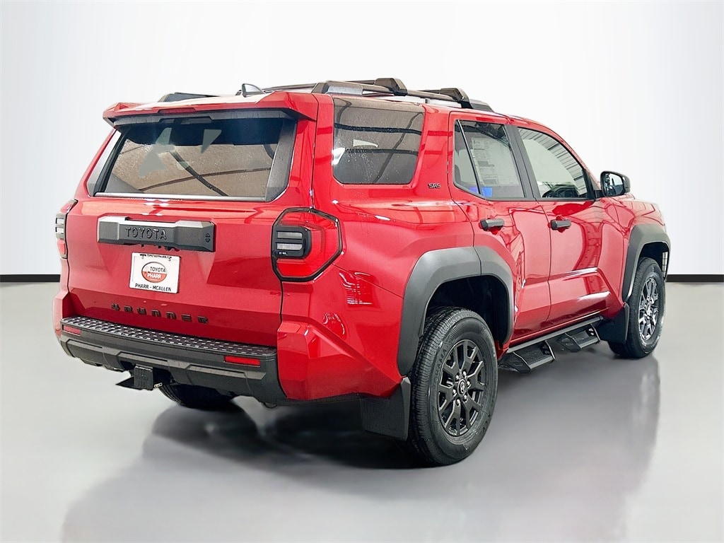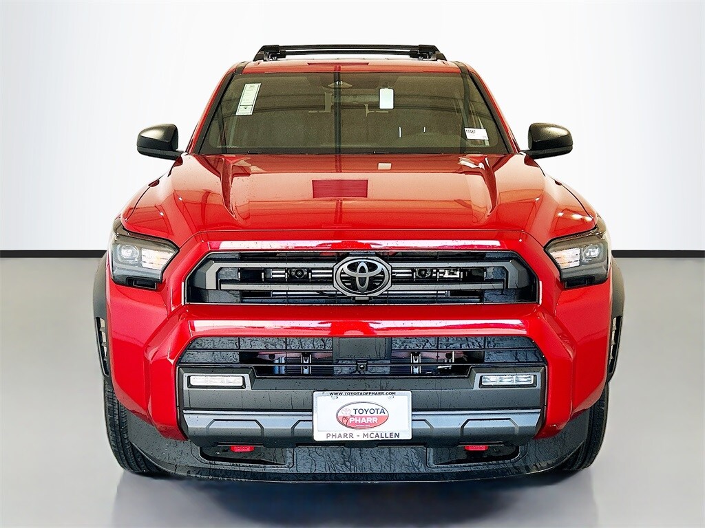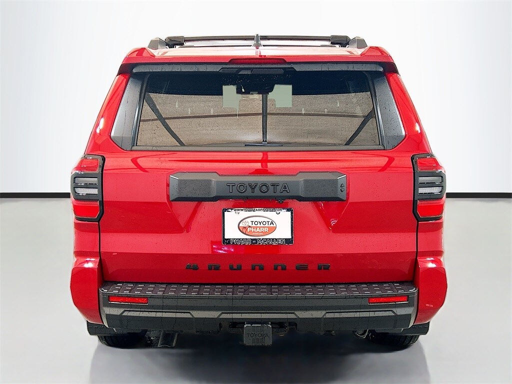 2026 Toyota 4Runner Supersonic Red 4WD SR5 8-Speed Automatic 2.4L 4-Cylinder 4WD, Black Cloth, 4-Wheel Disc Brakes, 8 Speakers, ABS brakes, Air Conditioning, Alloy wheels, AM/FM radio: SiriusXM, Anti-whiplash front head restraints, Apple CarPlay/Android Auto, Auto High-beam Headlights, Automatic temperature control, Brake assist, Bumpers: body-color, Driver door bin, Driver vanity mirror, Dual front impact airbags, Dual front side impact airbags, Electronic Stability Control, Emergency communication system: Safety Connect (1-year trial), Exterior Parking Camera Rear, Fabric Seat Trim (FA), Front and Rear Molded Black 4Runner Mudguards, Front anti-roll bar, Front Bucket Seats, Front Center Armrest, Front dual zone A/C, Front fog lights, Front reading lights, Front Red Tow Hooks Upgrade, Front wheel independent suspension, Heated door mirrors, Illuminated entry, Knee airbag, Leather Shift Knob, Leather steering wheel, Low tire pressure warning, Occupant sensing airbag, Outside temperature display, Overhead airbag, Overhead console, Panic alarm, Passenger door bin, Passenger vanity mirror, Power door mirrors, Power steering, Power windows, Radio: 8" Audio, Rear anti-roll bar, Rear seat center armrest, Rear side impact airbag, Rear window defroster, Rear window wiper, Remote keyless entry, Security system, Speed control, Speed-sensing steering, Split folding rear seat, Spoiler, Steering wheel mounted audio controls, Tachometer, Telescoping steering wheel, Third Row Seating - Fabric, Tilt steering wheel, Traction control, TRD Cast Aluminum Black Side Steps, Trip computer, Variably intermittent wipers, Wheels: 17" Dark-Gray Painted Alloy, 4WD, Black Cloth.