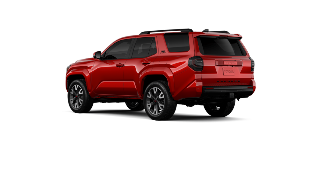 2026 Toyota 4Runner Supersonic Red RWD TRD Sport Premium 8-Speed Automatic 2.4L 4-Cylinder Black Artificial Leather, 15 Speakers, 4-Wheel Disc Brakes, ABS brakes, Air Conditioning, Alloy wheels, AM/FM radio, Anti-whiplash front head restraints, Auto High-beam Headlights, Automatic temperature control, Brake assist, Bumpers: body-color, Driver door bin, Driver vanity mirror, Dual front impact airbags, Dual front side impact airbags, Electronic Stability Control, Emergency communication system, Exterior Parking Camera Rear, Front and Rear Molded Black 4Runner Mudguards, Front anti-roll bar, Front Bucket Seats, Front Center Armrest, Front dual zone A/C, Front fog lights, Front reading lights, Front Red Tow Hooks Upgrade, Front wheel independent suspension, Heated and Ventilated Front Bucket Seats, Heated door mirrors, Heated front seats, Heated steering wheel, Illuminated entry, Intelligent Inside Rear View Mirror, Interior D-Pillar Cargo Lights, Knee airbag, Lane Departure Warning System, Leather Shift Knob, Leather steering wheel, Low tire pressure warning, Memory seat, Moonroof, Navigation System, Occupant sensing airbag, Outside temperature display, Overhead airbag, Overhead console, Panic alarm, Passenger door bin, Passenger vanity mirror, Power door mirrors, Power driver seat, Power passenger seat, Power steering, Power windows, Radio: 14" Audio, Rear anti-roll bar, Rear seat center armrest, Rear side impact airbag, Rear window defroster, Rear window wiper, Remote keyless entry, Security system, SofTex Seat Trim, Speed control, Speed-sensing steering, Split folding rear seat, Spoiler, Steering wheel mounted audio controls, Tachometer, Telescoping steering wheel, Tilt steering wheel, Traction control, TRD Cast Aluminum Black Side Steps, TRD Sport Premium, Trip computer, Variably intermittent wipers, Ventilated front seats, Wheels: 20" Dark-Gray Painted Alloy, Black Artificial Leather.
