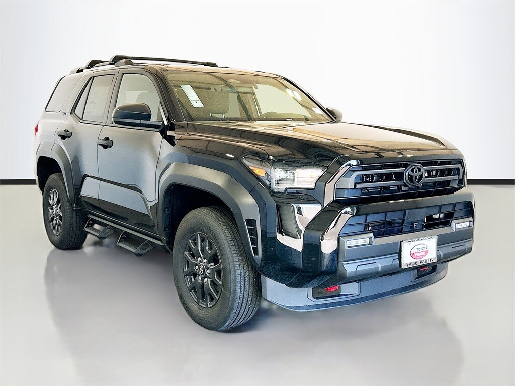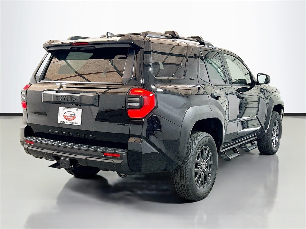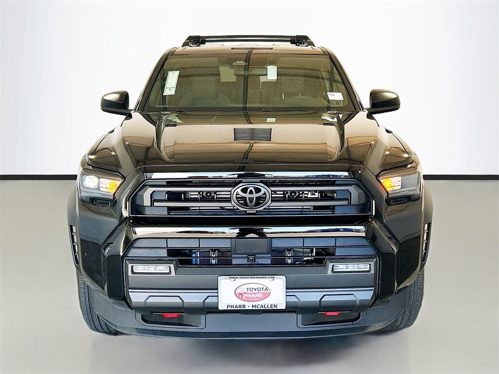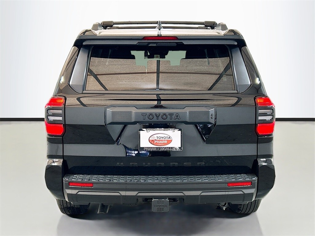 2026 Toyota 4Runner Black 4WD SR5 8-Speed Automatic 2.4L 4-Cylinder 4WD, Black Cloth, 4-Wheel Disc Brakes, 8 Speakers, ABS brakes, Air Conditioning, Alloy wheels, AM/FM radio: SiriusXM, Anti-whiplash front head restraints, Apple CarPlay/Android Auto, Auto High-beam Headlights, Automatic temperature control, Brake assist, Bumpers: body-color, Driver door bin, Driver vanity mirror, Dual front impact airbags, Dual front side impact airbags, Electronic Stability Control, Emergency communication system: Safety Connect (1-year trial), Exterior Parking Camera Rear, Fabric Seat Trim (FA), Front and Rear Molded Black 4Runner Mudguards, Front anti-roll bar, Front Bucket Seats, Front Center Armrest, Front dual zone A/C, Front fog lights, Front reading lights, Front Red Tow Hooks Upgrade, Front wheel independent suspension, Heated door mirrors, Illuminated entry, Knee airbag, Leather Shift Knob, Leather steering wheel, Low tire pressure warning, Occupant sensing airbag, Outside temperature display, Overhead airbag, Overhead console, Panic alarm, Passenger door bin, Passenger vanity mirror, Power door mirrors, Power steering, Power windows, Radio: 8" Audio, Rear anti-roll bar, Rear seat center armrest, Rear side impact airbag, Rear window defroster, Rear window wiper, Remote keyless entry, Security system, Speed control, Speed-sensing steering, Split folding rear seat, Spoiler, Steering wheel mounted audio controls, Tachometer, Telescoping steering wheel, Third Row Seating - Fabric, Tilt steering wheel, Traction control, TRD Cast Aluminum Black Side Steps, Trip computer, Variably intermittent wipers, Wheels: 17" Dark-Gray Painted Alloy, 4WD, Black Cloth.