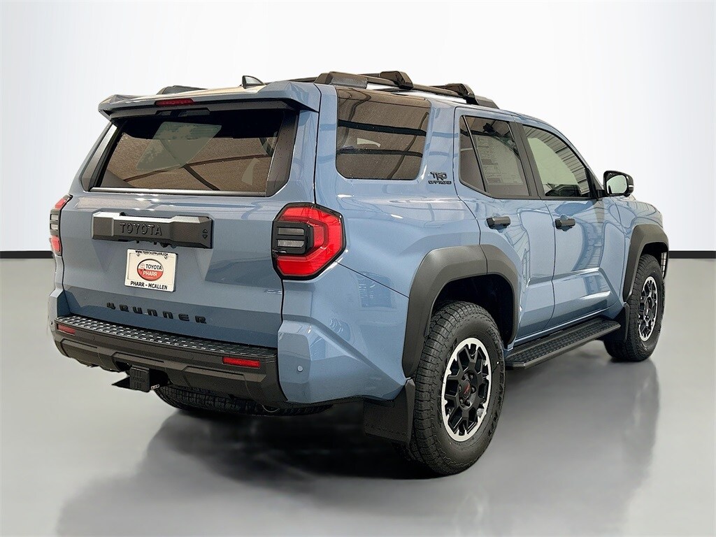 2026 Toyota 4Runner Heritage Blue 4WD TRD Off-Road Premium 8-Speed Automatic 2.4L 4-Cylinder 4WD, Black Artificial Leather, 15 Speakers, 4-Wheel Disc Brakes, ABS brakes, Air Conditioning, Alloy wheels, AM/FM radio: SiriusXM, Anti-whiplash front head restraints, Apple CarPlay/Android Auto, Auto High-beam Headlights, Auto-dimming Rear-View mirror, Automatic temperature control, Brake assist, Bumpers: body-color, Compass, Driver door bin, Driver vanity mirror, Dual front impact airbags, Dual front side impact airbags, Electronic Stability Control, Emergency communication system: Safety Connect (1-year trial), Exterior Parking Camera Rear, Front and Rear Molded Black 4Runner Mudguards, Front anti-roll bar, Front Bucket Seats, Front Center Armrest, Front dual zone A/C, Front fog lights, Front reading lights, Front wheel independent suspension, Heated and Ventilated Front Bucket Seats, Heated door mirrors, Heated front seats, Heated steering wheel, Illuminated entry, Interior D-Pillar Cargo Lights, Knee airbag, Leather Shift Knob, Leather steering wheel, Low tire pressure warning, Memory seat, Moonroof, Navigation System, Occupant sensing airbag, Outside temperature display, Overhead airbag, Overhead console, Panic alarm, Passenger door bin, Passenger vanity mirror, Power door mirrors, Power driver seat, Power passenger seat, Power steering, Power windows, Radio: 14" Audio, Rear anti-roll bar, Rear seat center armrest, Rear side impact airbag, Rear window defroster, Rear window wiper, Remote keyless entry, Security system, SofTex Seat Trim, Speed control, Speed-sensing steering, Split folding rear seat, Spoiler, Steering wheel mounted audio controls, Tachometer, Telescoping steering wheel, Tilt steering wheel, Tow Technology Package, Traction control, TRD Offroad Premium, Trip computer, Turn signal indicator mirrors, Variably intermittent wipers, Ventilated front seats, Wheels: 18" Matte-Black Painted, 4WD, Black Artificial Leather.