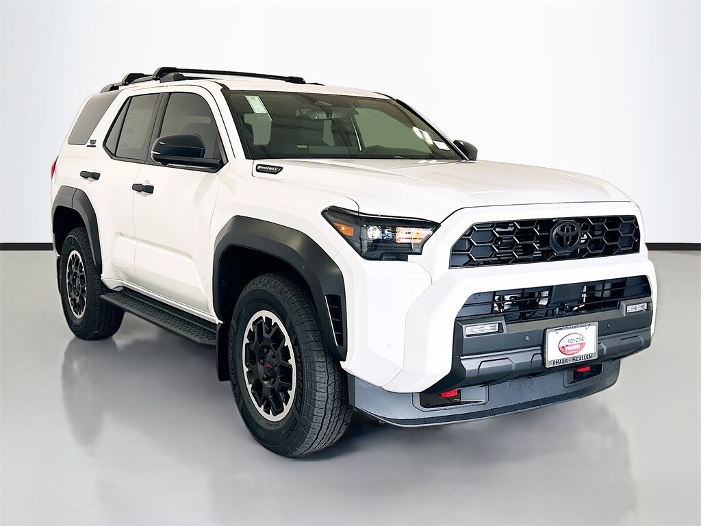 2026 Toyota 4Runner i-FORCE MAX Hybrid Ice Cap 4WD TRD Off Road Premium 8-Speed Automatic 2.4L 4-Cylinder 2.4L 4-Cylinder, 15 Speakers, 4-Wheel Disc Brakes, ABS brakes, Air Conditioning, Alloy wheels, AM/FM radio: SiriusXM, Anti-whiplash front head restraints, Apple CarPlay/Android Auto, Auto High-beam Headlights, Automatic temperature control, Brake assist, Bumpers: body-color, Driver door bin, Driver vanity mirror, Dual front impact airbags, Dual front side impact airbags, Electronic Stability Control, Emergency communication system: Safety Connect (1-year trial), Exterior Parking Camera Rear, Front and Rear Molded Black 4Runner Mudguards, Front anti-roll bar, Front Bucket Seats, Front Center Armrest, Front dual zone A/C, Front fog lights, Front reading lights, Front Red Tow Hooks Upgrade, Front wheel independent suspension, Heated and Ventilated Front Bucket Seats, Heated door mirrors, Heated front seats, Heated steering wheel, Illuminated entry, Intelligent Inside Rear View Mirror, Interior D-Pillar Cargo Lights, Knee airbag, Leather Shift Knob, Leather steering wheel, Low tire pressure warning, Memory seat, Navigation System, Occupant sensing airbag, Outside temperature display, Overhead airbag, Overhead console, Panic alarm, Passenger door bin, Passenger vanity mirror, Power door mirrors, Power driver seat, Power passenger seat, Power steering, Power windows, Prewired Auxiliary Switches, Radio: 14" Audio, Rear anti-roll bar, Rear seat center armrest, Rear side impact airbag, Rear window defroster, Rear window wiper, Remote keyless entry, Security system, SofTex Seat Trim, Speed control, Speed-sensing steering, Split folding rear seat, Spoiler, Steering wheel mounted audio controls, Tachometer, Telescoping steering wheel, Tilt steering wheel, Traction control, TRD Offroad Premium Package, Trip computer, Variably intermittent wipers, Ventilated front seats, Wheels: 18" Matte-Black Painted Alloy, 2.4L 4-Cylinder.