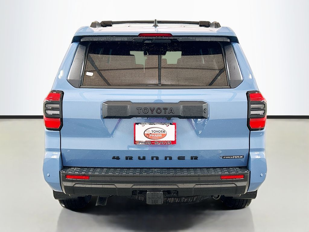 2026 Toyota 4Runner i-FORCE MAX Hybrid Heritage Blue 4WD TRD Off Road Premium 8-Speed Automatic 2.4L 4-Cylinder 2.4L 4-Cylinder, 15 Speakers, 4-Wheel Disc Brakes, ABS brakes, Air Conditioning, Alloy wheels, AM/FM radio: SiriusXM, Anti-whiplash front head restraints, Apple CarPlay/Android Auto, Auto High-beam Headlights, Automatic temperature control, Brake assist, Bumpers: body-color, Driver door bin, Driver vanity mirror, Dual front impact airbags, Dual front side impact airbags, Electronic Stability Control, Emergency communication system: Safety Connect (1-year trial), Exterior Parking Camera Rear, Front and Rear Molded Black 4Runner Mudguards, Front anti-roll bar, Front Bucket Seats, Front Center Armrest, Front dual zone A/C, Front fog lights, Front reading lights, Front Red Tow Hooks Upgrade, Front wheel independent suspension, Heated and Ventilated Front Bucket Seats, Heated door mirrors, Heated front seats, Heated steering wheel, Illuminated entry, Intelligent Inside Rear View Mirror, Interior D-Pillar Cargo Lights, Knee airbag, Leather Shift Knob, Leather steering wheel, Low tire pressure warning, Memory seat, Navigation System, Occupant sensing airbag, Outside temperature display, Overhead airbag, Overhead console, Panic alarm, Passenger door bin, Passenger vanity mirror, Power door mirrors, Power driver seat, Power passenger seat, Power steering, Power windows, Prewired Auxiliary Switches, Radio: 14" Audio, Rear anti-roll bar, Rear seat center armrest, Rear side impact airbag, Rear window defroster, Rear window wiper, Remote keyless entry, Security system, SofTex Seat Trim, Speed control, Speed-sensing steering, Split folding rear seat, Spoiler, Steering wheel mounted audio controls, Tachometer, Telescoping steering wheel, Tilt steering wheel, Traction control, TRD Offroad Premium Package, Trip computer, Variably intermittent wipers, Ventilated front seats, Wheels: 18" Matte-Black Painted Alloy, 2.4L 4-Cylinder.