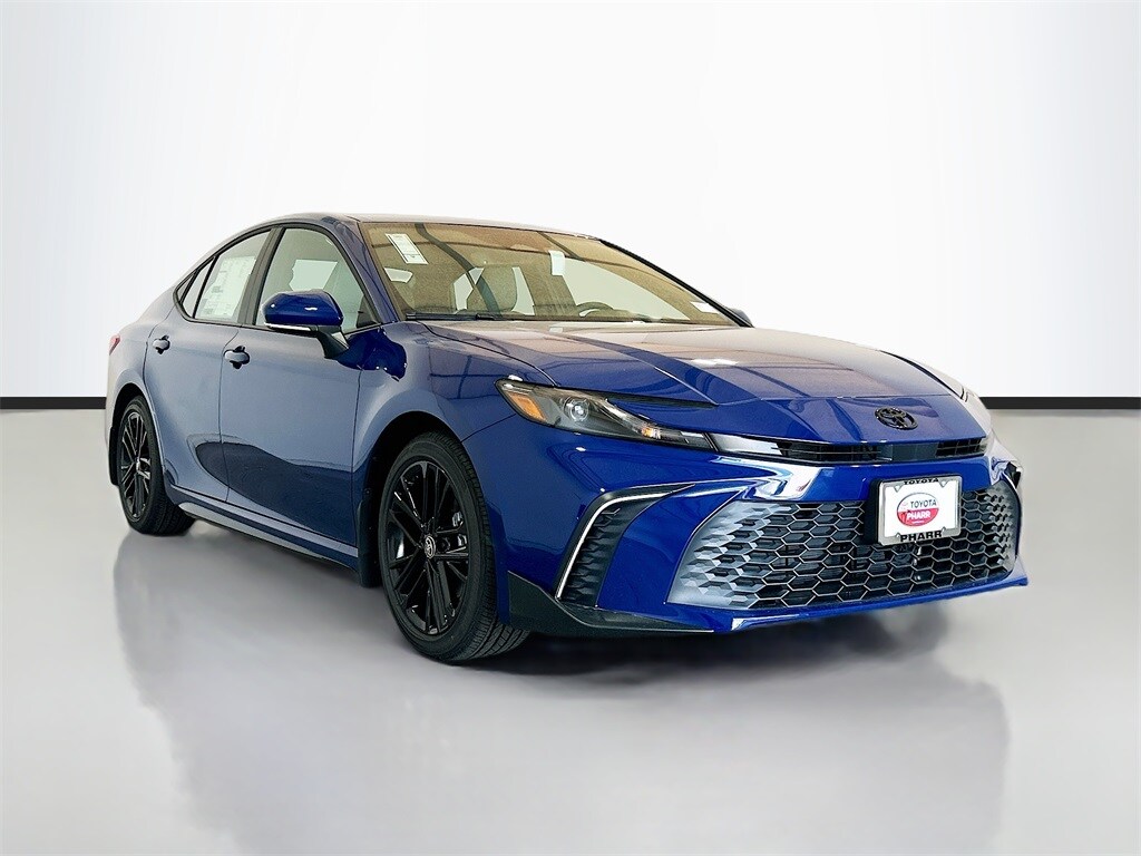 2026 Toyota Camry Reservoir Blue FWD SE eCVT 2.5L 4-Cylinder 16V DOHC Boulder Cloth, 4-Wheel Disc Brakes, 6 Speakers, ABS brakes, Air Conditioning, Alloy wheels, AM/FM radio: SiriusXM, Apple CarPlay/Android Auto, Auto High-beam Headlights, Auto-Dimming Rearview Mirror with HomeLink, Automatic temperature control, Brake assist, Bumpers: body-color, Convenience Package, Delay-off headlights, Driver door bin, Driver vanity mirror, Dual front impact airbags, Dual front side impact airbags, Electronic Stability Control, Emergency communication system: Safety Connect (5-year trial), Exterior Parking Camera Rear, Four wheel independent suspension, Front Accent Lights, Front anti-roll bar, Front Bucket Seats, Front Center Armrest, Front dual zone A/C, Front reading lights, Front Seats, Fully automatic headlights, Heated door mirrors, Heated Front Seats, Illuminated entry, Knee airbag, Leather Shift Knob, Leather steering wheel, Low tire pressure warning, Occupant sensing airbag, Outside temperature display, Overhead airbag, Overhead console, Panic alarm, Passenger door bin, Passenger vanity mirror, Power door mirrors, Power driver seat, Power steering, Power windows, Radio data system, Radio: 12.3" Toyota Multimedia Audio, Radio: 8" Toyota Audio Multimedia, Rear anti-roll bar, Rear reading lights, Rear seat center armrest, Rear window defroster, Remote keyless entry, Security system, Smart Key System on Front Doors, SofTex and Fabric Seat Trim, Speed control, Speed-sensing steering, Split folding rear seat, Spoiler, Steering wheel mounted audio controls, Telescoping steering wheel, Tilt steering wheel, Traction control, Trip computer, Turn signal indicator mirrors, Variably intermittent wipers, Wheels: 18" Multi-Spoke Black-Finished Alloy, Boulder Cloth.