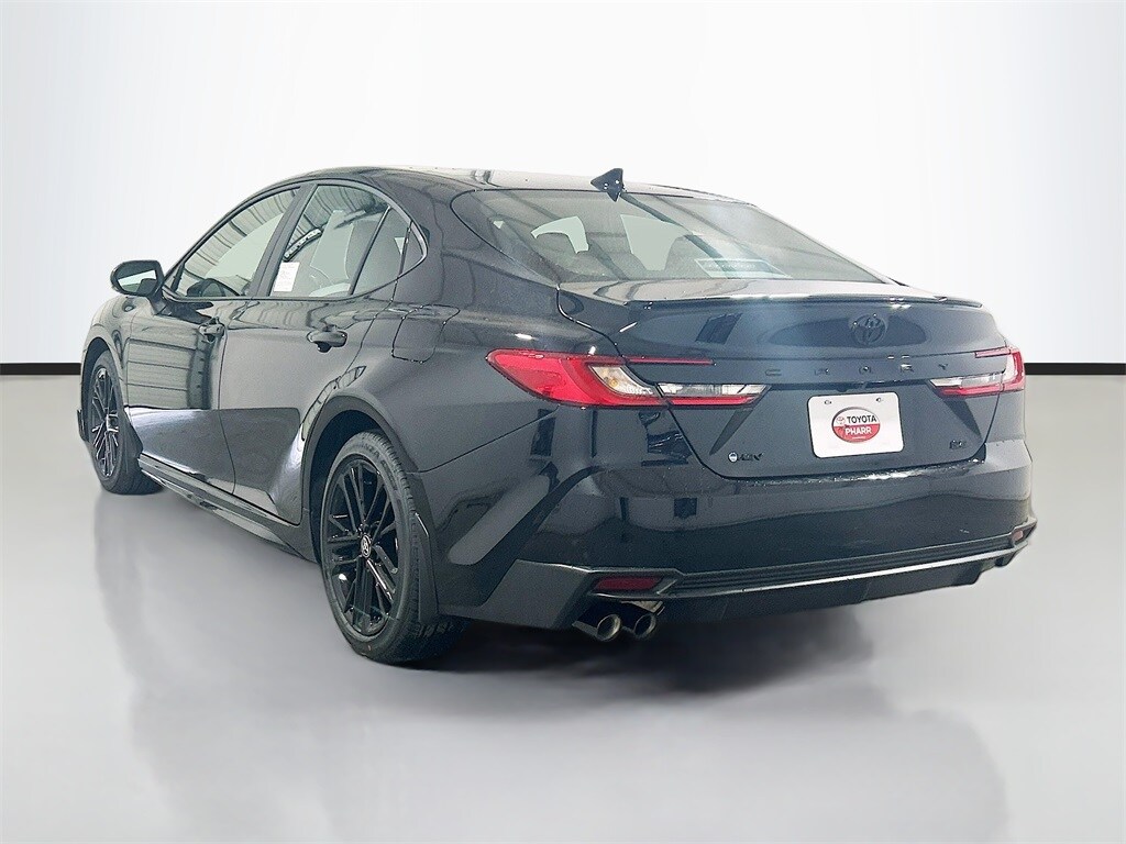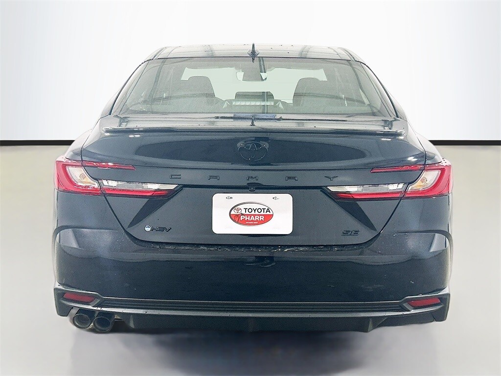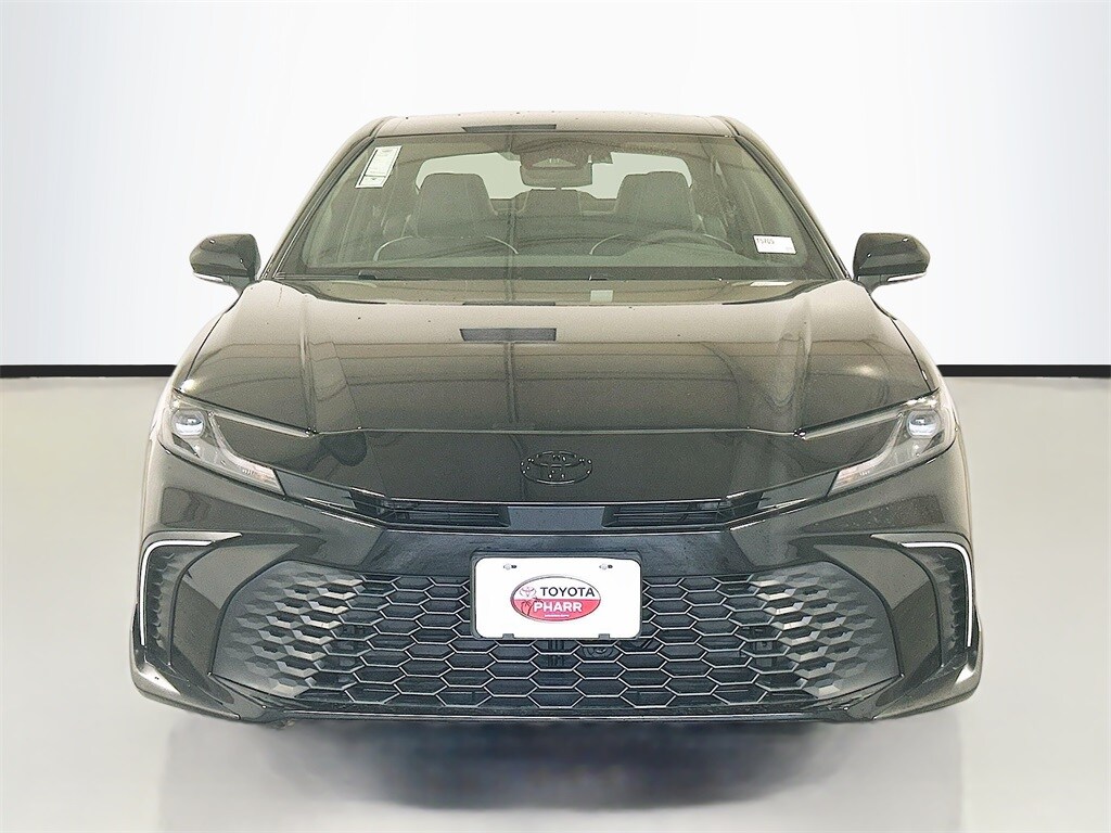 2026 Toyota Camry Midnight Black Metallic FWD SE eCVT 2.5L 4-Cylinder 16V DOHC Black Cloth, 4-Wheel Disc Brakes, 6 Speakers, ABS brakes, Air Conditioning, Alloy wheels, AM/FM radio: SiriusXM, Apple CarPlay/Android Auto, Auto High-beam Headlights, Auto-Dimming Rearview Mirror with HomeLink, Automatic temperature control, Brake assist, Bumpers: body-color, Convenience Package, Delay-off headlights, Driver door bin, Driver vanity mirror, Dual front impact airbags, Dual front side impact airbags, Electronic Stability Control, Emergency communication system: Safety Connect (5-year trial), Exterior Parking Camera Rear, Four wheel independent suspension, Front Accent Lights, Front anti-roll bar, Front Bucket Seats, Front Center Armrest, Front dual zone A/C, Front reading lights, Front Seats, Fully automatic headlights, Heated door mirrors, Heated Front Seats, Illuminated entry, Knee airbag, Leather Shift Knob, Leather steering wheel, Low tire pressure warning, Mudguards, Occupant sensing airbag, Outside temperature display, Overhead airbag, Overhead console, Panic alarm, Passenger door bin, Passenger vanity mirror, Power door mirrors, Power driver seat, Power steering, Power windows, Radio data system, Radio: 12.3" Toyota Multimedia Audio, Radio: 8" Toyota Audio Multimedia, Rear anti-roll bar, Rear reading lights, Rear seat center armrest, Rear window defroster, Remote keyless entry, Security system, Smart Key System on Front Doors, SofTex and Fabric Seat Trim, Speed control, Speed-sensing steering, Split folding rear seat, Spoiler, Steering wheel mounted audio controls, Telescoping steering wheel, Tilt steering wheel, Traction control, Trip computer, Turn signal indicator mirrors, Variably intermittent wipers, Wheels: 18" Multi-Spoke Black-Finished Alloy, Black Cloth.