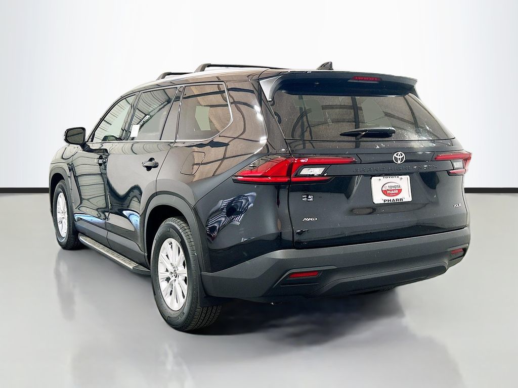 2026 Toyota Grand Highlander Midnight Black Metallic AWD XLE 8-Speed Automatic 2.4L 4-Cylinder 3rd row seats: split-bench, 4-Wheel Disc Brakes, 6 Speakers, ABS brakes, Air Conditioning, Alloy wheels, AM/FM radio: SiriusXM, Apple CarPlay/Android Auto, Auto High-beam Headlights, Auto-dimming Rear-View mirror, Automatic temperature control, Brake assist, Bumpers: body-color, Delay-off headlights, Driver door bin, Driver vanity mirror, Dual front impact airbags, Dual front side impact airbags, Electronic Stability Control, Emergency communication system: Safety Connect (up to 10-year trial subscription), Exterior Parking Camera Rear, Four wheel independent suspension, Front anti-roll bar, Front Bucket Seats, Front Center Armrest, Front dual zone A/C, Front reading lights, Fully automatic headlights, Garage door transmitter: HomeLink, Heated door mirrors, Heated Front Seats, Heated front seats, Illuminated Cargo Sill, Illuminated entry, Knee airbag, Leather Shift Knob, Leather steering wheel, Low tire pressure warning, Mudguards, Navigation system: Drive Connect Cloud Navigation (1-year trial subscription), Occupant sensing airbag, Outside temperature display, Overhead airbag, Overhead console, Panic alarm, Passenger door bin, Passenger vanity mirror, Power door mirrors, Power driver seat, Power Liftgate, Power passenger seat, Power steering, Power Tilt/Slide Panoramic Rood with Power Sunshade, Power windows, Radio: 12.3" Toyota Multimedia Audio, Rear air conditioning, Rear anti-roll bar, Rear Hatch Cargo Lamps, Rear reading lights, Rear window defroster, Rear window wiper, Reclining 3rd row seat, Remote keyless entry, Running Boards, Security system, SofTex Seat Trim, Speed control, Speed-sensing steering, Split folding rear seat, Spoiler, Steering wheel mounted audio controls, Tachometer, Telescoping steering wheel, Tilt steering wheel, Traction control, Trip computer, Turn signal indicator mirrors, Variably intermittent wipers, Wheels: 18" Multi-Spoke Aluminum Silver.