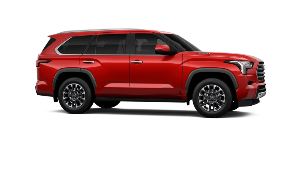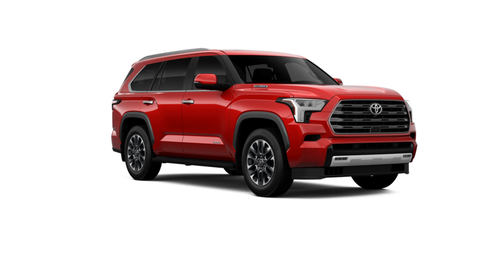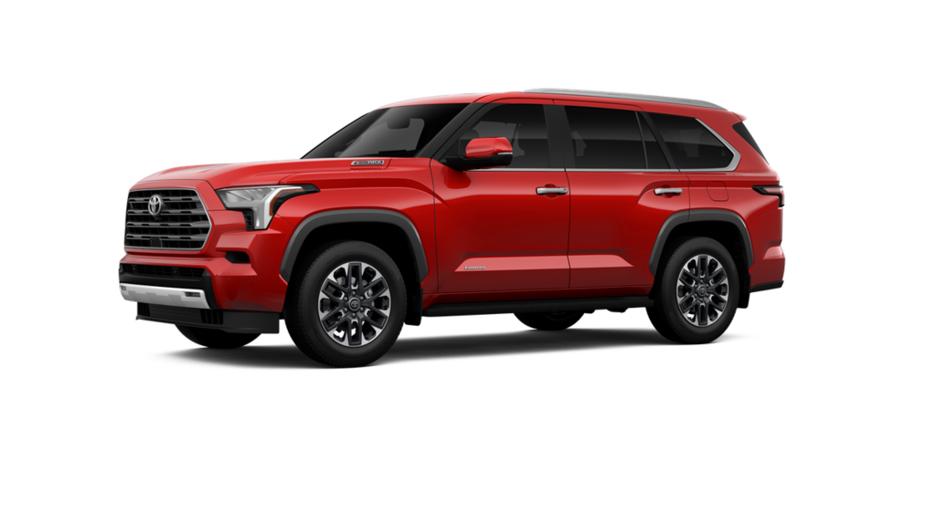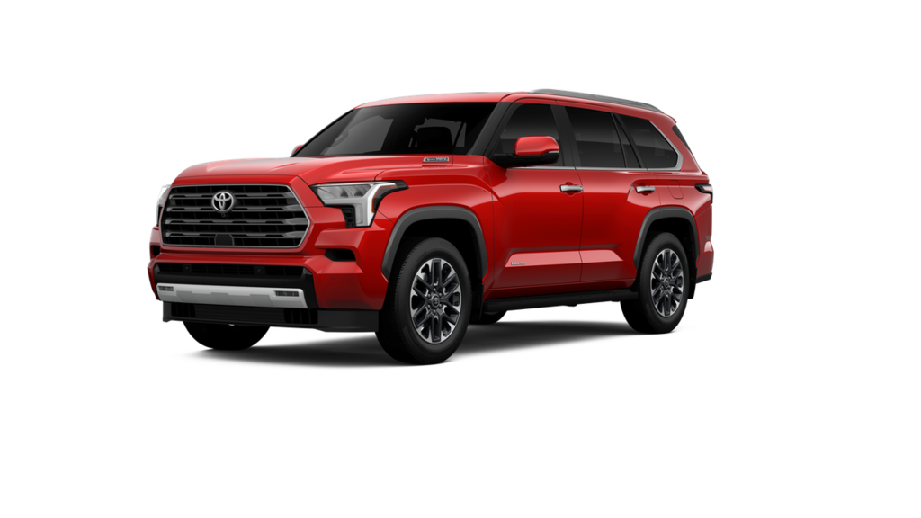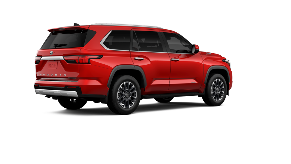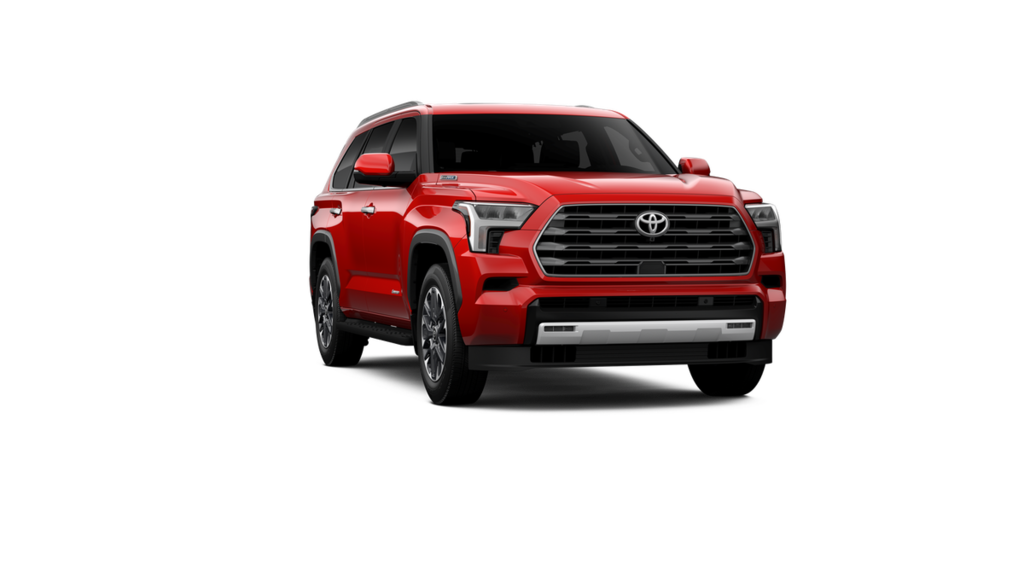 2026 Toyota Sequoia Supersonic Red RWD Limited 10-Speed Automatic V6 Hybrid V6 Hybrid, 10-Speed Automatic, 3rd row seats: split-bench, 4-Wheel Disc Brakes, 8 Speakers, ABS brakes, Air Conditioning, Alloy wheels, AM/FM radio: SiriusXM, Anti-whiplash front head restraints, Apple CarPlay/Android Auto, Auto High-beam Headlights, Auto-dimming door mirrors, Auto-dimming Rear-View mirror, Automatic temperature control, Black Overfenders and Rear Bumper, Brake assist, Bumpers: body-color, Carpet Floor Mats/Carpet Cargo Mat, Delay-off headlights, Driver door bin, Driver vanity mirror, Dual front impact airbags, Dual front side impact airbags, Electronic Stability Control, Emergency communication system: Safety Connect (10-year trial), Exterior Parking Camera Rear, Fold and Tumble Rear Seat, Front anti-roll bar, Front Bucket Seats, Front Center Armrest w/Storage, Front dual zone A/C, Front fog lights, Front reading lights, Front wheel independent suspension, Fully automatic headlights, Garage door transmitter: HomeLink, Gloss Black Door Handles, Gloss Black Mirror Caps, Gloss Black Tailgate Handle, Gloss Black Window Molding, Headlight cleaning, Heated and Ventilated Front Seats, Heated door mirrors, Heated front seats, Heated steering wheel, Illuminated entry, JBL Premium Audio, Knee airbag, Leather Seat Trim, Leather Shift Knob, Leather steering wheel, Low tire pressure warning, Memory seat, Navigation system: Drive Connect (1 year trial) includes Cloud Navigation with real time traffic and Google POI, Nightshade Package, Occupant sensing airbag, Outside temperature display, Overhead airbag, Overhead console, Panic alarm, Passenger door bin, Passenger vanity mirror, Power door mirrors, Power driver seat, Power Liftgate, Power moonroof, Power passenger seat, Power steering, Power Tilt/Slide Panoramic Rood with Power Sunshade, Power windows, Radio: 14" Toyota Audio Multimedia, Rear air conditioning, Rear reading lights, Rear seat center armrest, Rear window defroster, Rear window wiper, Reclining 3rd row seat, Remote keyless entry, Second Row Bucket Seats, Security system, Speed control, Speed-sensing steering, Split folding rear seat, Spoiler, Steering wheel mounted audio controls, Tachometer, Telescoping steering wheel, Tilt steering wheel, Tow Technology Package Without Wireless Trailer Camera System, Traction control, Trailer Backup Guide with Straight Path Assist (SPA), Trip computer, Turn signal indicator mirrors, Variably intermittent wipers, Ventilated front seats, Voltmeter, Wheels: 20" Machined-Finish Alloy, Wheels: 20" TRD Sport Matte-Black Alloy, Wireless Smartphone Charger, V6 Hybrid, 10-Speed Automatic.