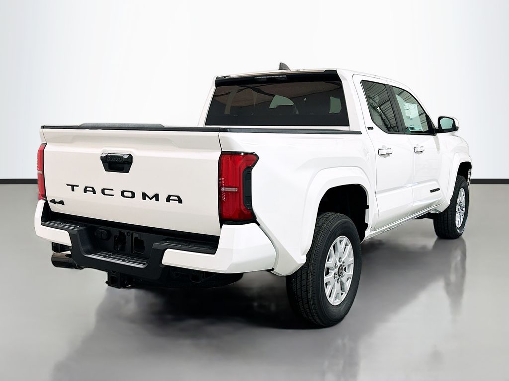 2026 Toyota Tacoma Ice Cap 4WD SR5 8-Speed Automatic 2.4L 4-Cylinder 4WD, 3.583 Axle Ratio, 4-Wheel Disc Brakes, 6 Speakers, ABS brakes, Air Conditioning, Alloy wheels, AM/FM radio: SiriusXM, Anti-whiplash front head restraints, Apple CarPlay/Android Auto, Auto High-beam Headlights, Auto-dimming Rear-View mirror, Brake assist, Bumpers: body-color, Driver door bin, Dual front impact airbags, Dual front side impact airbags, Electronic Stability Control, Emergency communication system: Safety Connect (up to 10-year trial subscription), Exterior Parking Camera Rear, Fabric Seat Trim, Four wheel independent suspension, Front anti-roll bar, Front Bucket Seats, Front Center Armrest, Front fog lights, Front reading lights, Fully automatic headlights, Heated door mirrors, Illuminated entry, Knee airbag, Low tire pressure warning, Occupant sensing airbag, Outside temperature display, Overhead airbag, Overhead console, Panic alarm, Passenger door bin, Power door mirrors, Power steering, Power windows, Radio: 8" Toyota Audio Multimedia, Rear step bumper, Rear window defroster, Remote keyless entry, Speed control, Speed-sensing steering, Split folding rear seat, Spray-on Bed Liner, Steering wheel mounted audio controls, Tachometer, Telescoping steering wheel, Tilt steering wheel, Traction control, Trip computer, Variably intermittent wipers, Wheels: 17" Styled Alloy, 4WD.