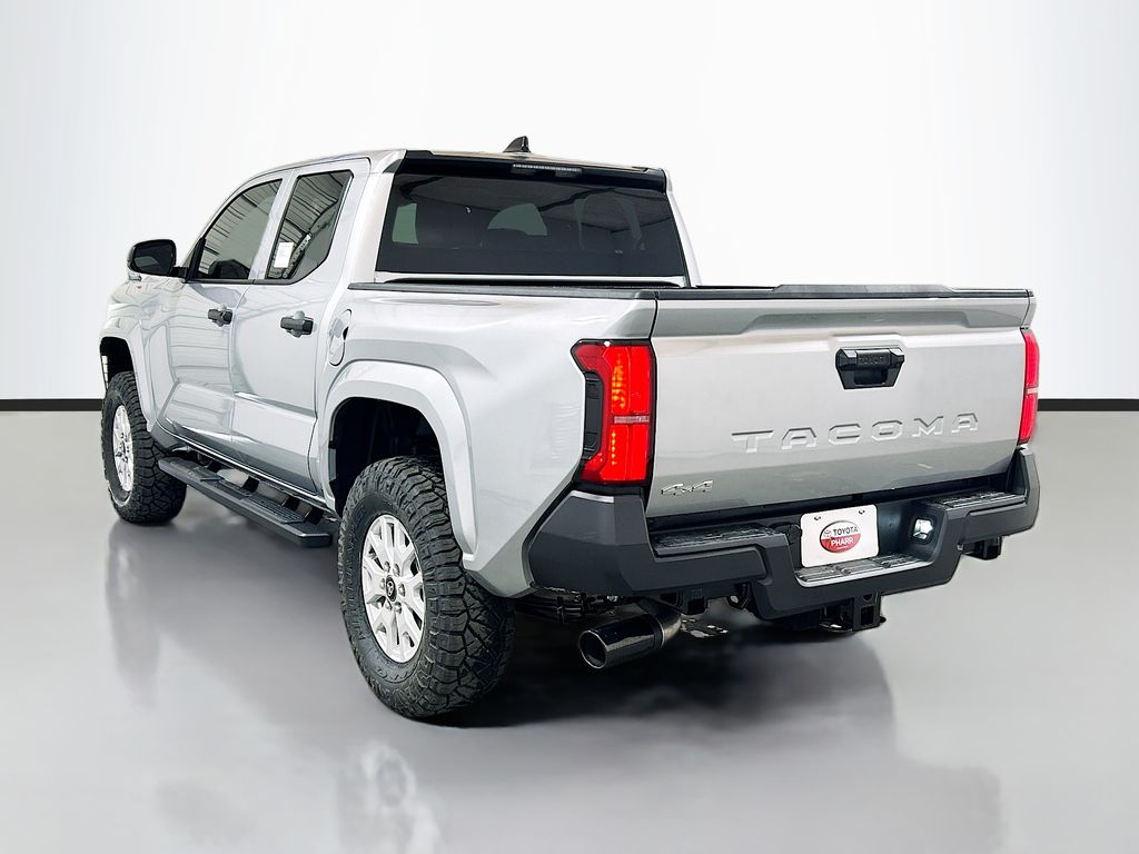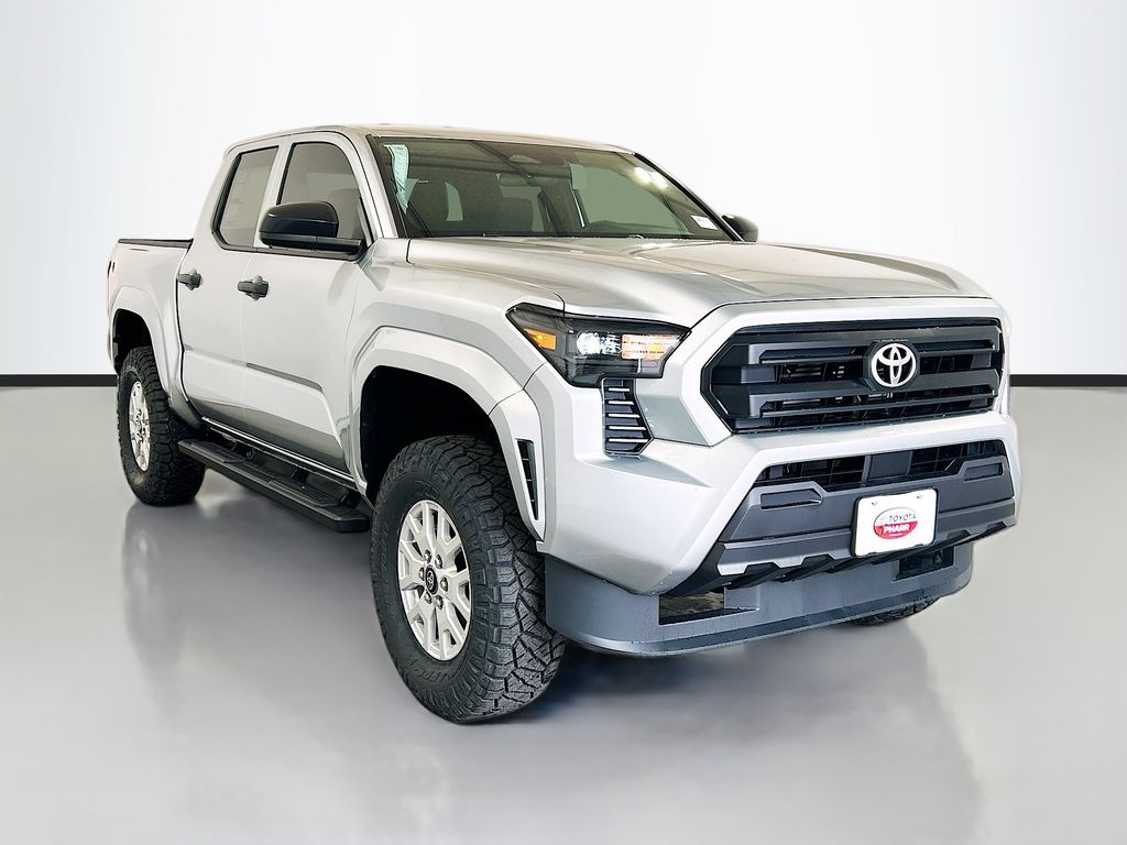 2026 Toyota Tacoma Celestial Silver Metallic 4WD SR 8-Speed Automatic 2.4L 4-Cylinder 4WD, 3.583 Axle Ratio, 4-Wheel Disc Brakes, 6 Speakers, ABS brakes, Air Conditioning, Alloy wheels, AM/FM radio: SiriusXM, Anti-whiplash front head restraints, Apple CarPlay/Android Auto, Auto High-beam Headlights, Brake assist, Bumpers: body-color, Driver door bin, Dual front impact airbags, Dual front side impact airbags, Electronic Stability Control, Emergency communication system: Safety Connect (up to 10-year trial subscription), Exterior Parking Camera Rear, Fabric Seat Trim, Front anti-roll bar, Front Bucket Seats, Front Center Armrest, Front reading lights, Front wheel independent suspension, Fully automatic headlights, Heated door mirrors, Illuminated entry, Knee airbag, Low tire pressure warning, Occupant sensing airbag, Outside temperature display, Overhead airbag, Overhead console, Passenger door bin, Power door mirrors, Power steering, Power windows, Radio: 8" Toyota Audio Multimedia, Rear step bumper, Rear window defroster, Remote keyless entry, Speed control, Speed-sensing steering, Split folding rear seat, Spray-on Bed Liner, Steering wheel mounted audio controls, Tachometer, Telescoping steering wheel, Tilt steering wheel, Traction control, Trip computer, Variably intermittent wipers, Wheels: 17" Styled Alloy, 4WD.
