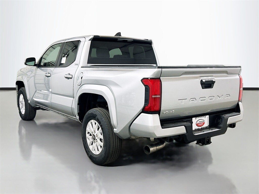 2026 Toyota Tacoma Celestial Silver Metallic 4WD SR5 8-Speed Automatic 2.4L 4-Cylinder 4WD, 3.583 Axle Ratio, 4-Wheel Disc Brakes, 6 Speakers, ABS brakes, Air Conditioning, Alloy wheels, AM/FM radio: SiriusXM, Anti-whiplash front head restraints, Apple CarPlay/Android Auto, Auto High-beam Headlights, Auto-dimming Rear-View mirror, Brake assist, Bumpers: body-color, Driver door bin, Dual front impact airbags, Dual front side impact airbags, Electronic Stability Control, Emergency communication system: Safety Connect (up to 10-year trial subscription), Exterior Parking Camera Rear, Fabric Seat Trim, Four wheel independent suspension, Front anti-roll bar, Front Bucket Seats, Front Center Armrest, Front fog lights, Front reading lights, Fully automatic headlights, Heated door mirrors, Illuminated entry, Knee airbag, Low tire pressure warning, Occupant sensing airbag, Outside temperature display, Overhead airbag, Overhead console, Panic alarm, Passenger door bin, Power door mirrors, Power steering, Power windows, Radio: 8" Toyota Audio Multimedia, Rear step bumper, Rear window defroster, Remote keyless entry, Speed control, Speed-sensing steering, Split folding rear seat, Spray-on Bed Liner, Steering wheel mounted audio controls, Tachometer, Telescoping steering wheel, Tilt steering wheel, Traction control, Trip computer, Variably intermittent wipers, Wheels: 17" Styled Alloy, 4WD.