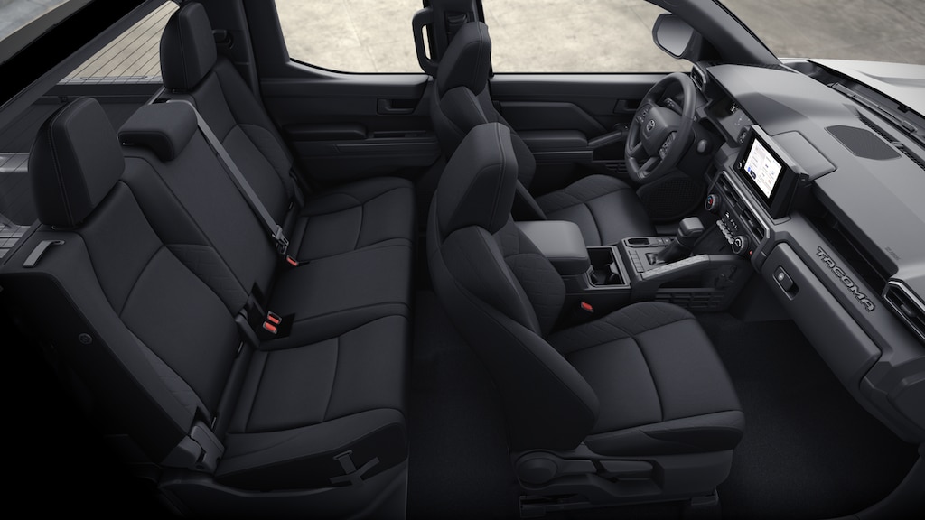 2026 Toyota Tacoma Ice Cap RWD SR 8-Speed Automatic 2.4L 4-Cylinder 3.583 Axle Ratio, 4-Wheel Disc Brakes, 6 Speakers, ABS brakes, Air Conditioning, Alloy wheels, AM/FM radio: SiriusXM, Anti-whiplash front head restraints, Apple CarPlay/Android Auto, Auto High-beam Headlights, Brake assist, Bumpers: body-color, Driver door bin, Dual front impact airbags, Dual front side impact airbags, Electronic Stability Control, Emergency communication system: Safety Connect (up to 10-year trial subscription), Exterior Parking Camera Rear, Fabric Seat Trim, Front anti-roll bar, Front Bucket Seats, Front Center Armrest, Front reading lights, Front wheel independent suspension, Fully automatic headlights, Heated door mirrors, Illuminated entry, Knee airbag, Low tire pressure warning, Occupant sensing airbag, Outside temperature display, Overhead airbag, Overhead console, Passenger door bin, Power door mirrors, Power steering, Power windows, Radio: 8" Toyota Audio Multimedia, Rear step bumper, Rear window defroster, Remote keyless entry, Speed control, Speed-sensing steering, Split folding rear seat, Spray-on Bed Liner, Steering wheel mounted audio controls, Tachometer, Telescoping steering wheel, Tilt steering wheel, Traction control, Trip computer, Variably intermittent wipers, Wheels: 17" Styled Alloy.