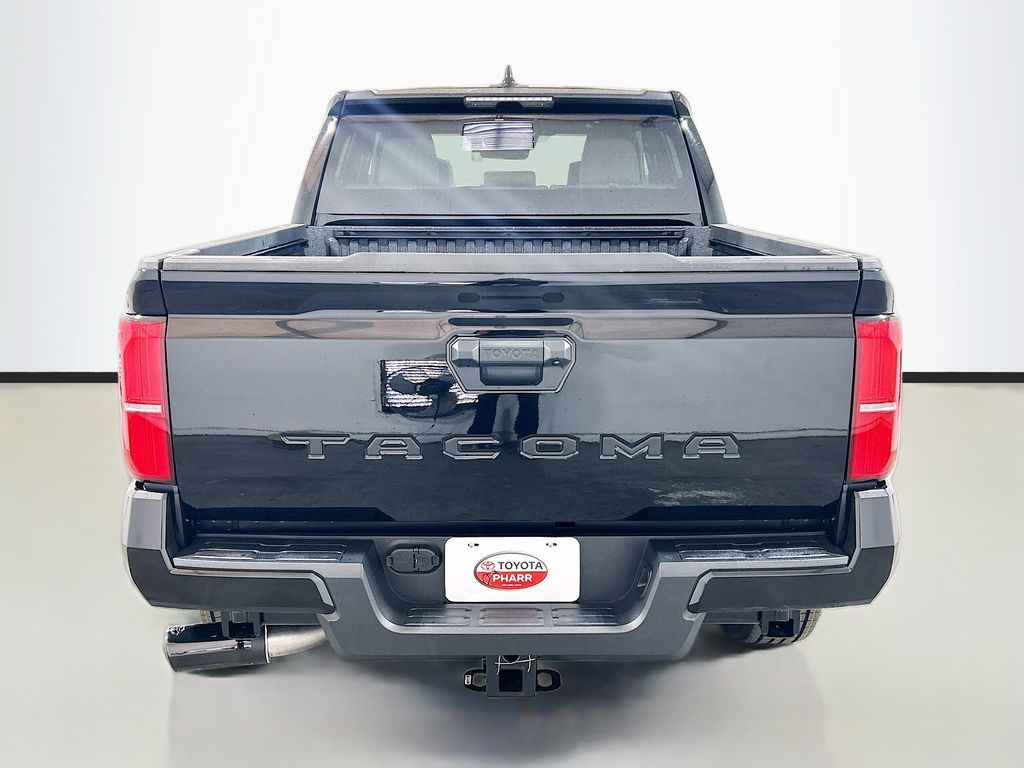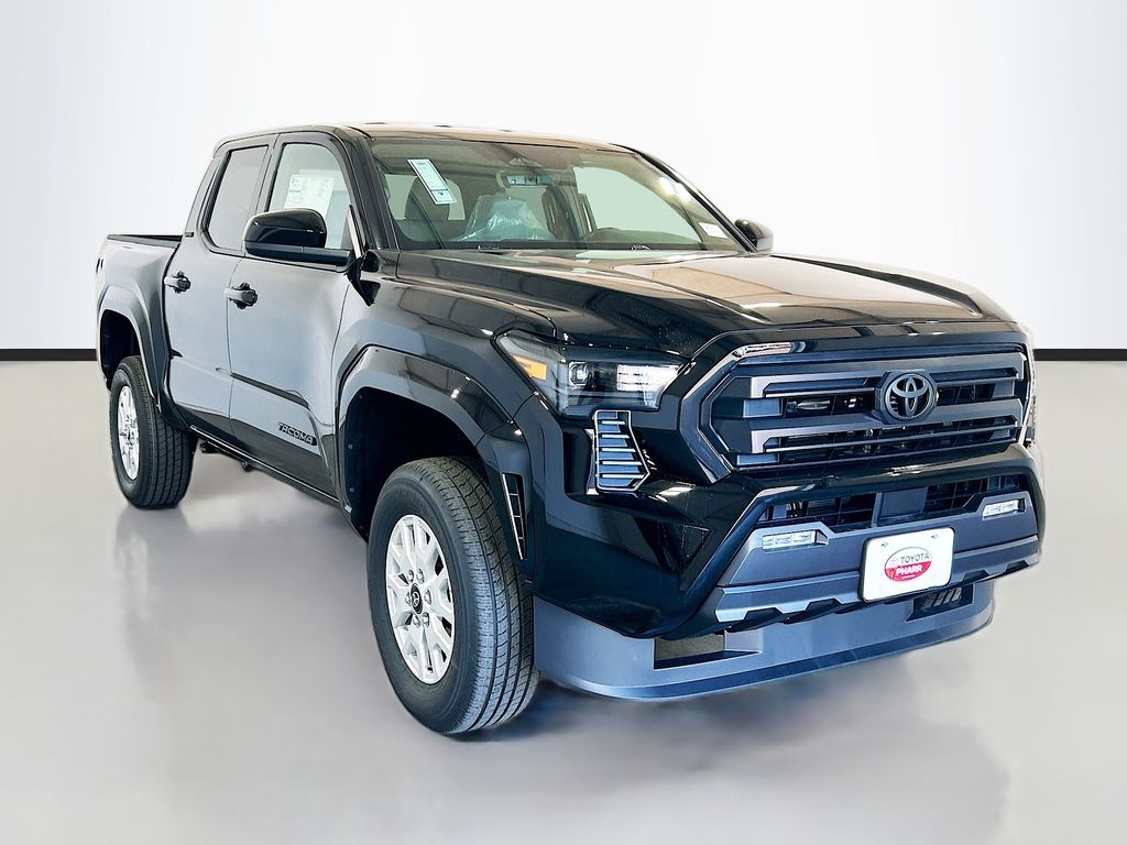 2026 Toyota Tacoma Black RWD SR5 8-Speed Automatic 2.4L 4-Cylinder 3.583 Axle Ratio, 4-Wheel Disc Brakes, 6 Speakers, ABS brakes, Air Conditioning, Alloy wheels, AM/FM radio: SiriusXM, Anti-whiplash front head restraints, Apple CarPlay/Android Auto, Auto High-beam Headlights, Auto-dimming Rear-View mirror, Brake assist, Bumpers: body-color, Driver door bin, Dual front impact airbags, Dual front side impact airbags, Electronic Stability Control, Emergency communication system: Safety Connect (up to 10-year trial subscription), Exterior Parking Camera Rear, Fabric Seat Trim, Four wheel independent suspension, Front anti-roll bar, Front Bucket Seats, Front Center Armrest, Front fog lights, Front reading lights, Fully automatic headlights, Heated door mirrors, Illuminated entry, Knee airbag, Low tire pressure warning, Occupant sensing airbag, Outside temperature display, Overhead airbag, Overhead console, Panic alarm, Passenger door bin, Power door mirrors, Power steering, Power windows, Radio: 8" Toyota Audio Multimedia, Rear step bumper, Rear window defroster, Remote keyless entry, Speed control, Speed-sensing steering, Split folding rear seat, Spray-on Bed Liner, Steering wheel mounted audio controls, Tachometer, Telescoping steering wheel, Tilt steering wheel, Traction control, Trip computer, Variably intermittent wipers, Wheels: 17" Styled Alloy.