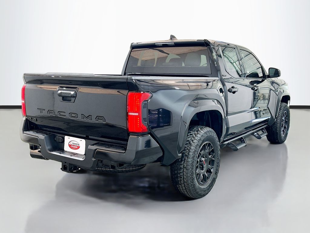 2026 Toyota Tacoma Black 4WD SR5 8-Speed Automatic 2.4L 4-Cylinder 4WD, 3.583 Axle Ratio, 4-Wheel Disc Brakes, 6 Speakers, ABS brakes, Air Conditioning, Alloy wheels, AM/FM radio: SiriusXM, Anti-whiplash front head restraints, Apple CarPlay/Android Auto, Auto High-beam Headlights, Auto-dimming Rear-View mirror, Brake assist, Bumpers: body-color, Driver door bin, Dual front impact airbags, Dual front side impact airbags, Electronic Stability Control, Emergency communication system: Safety Connect (up to 10-year trial subscription), Exterior Parking Camera Rear, Fabric Seat Trim, Four wheel independent suspension, Front anti-roll bar, Front Bucket Seats, Front Center Armrest, Front fog lights, Front reading lights, Fully automatic headlights, Heated door mirrors, Illuminated entry, Knee airbag, Low tire pressure warning, Occupant sensing airbag, Outside temperature display, Overhead airbag, Overhead console, Panic alarm, Passenger door bin, Power door mirrors, Power steering, Power windows, Radio: 8" Toyota Audio Multimedia, Rear step bumper, Rear window defroster, Remote keyless entry, Speed control, Speed-sensing steering, Split folding rear seat, Spray-on Bed Liner, Steering wheel mounted audio controls, Tachometer, Telescoping steering wheel, Tilt steering wheel, Traction control, Trip computer, Variably intermittent wipers, Wheels: 17" Styled Alloy, 4WD.