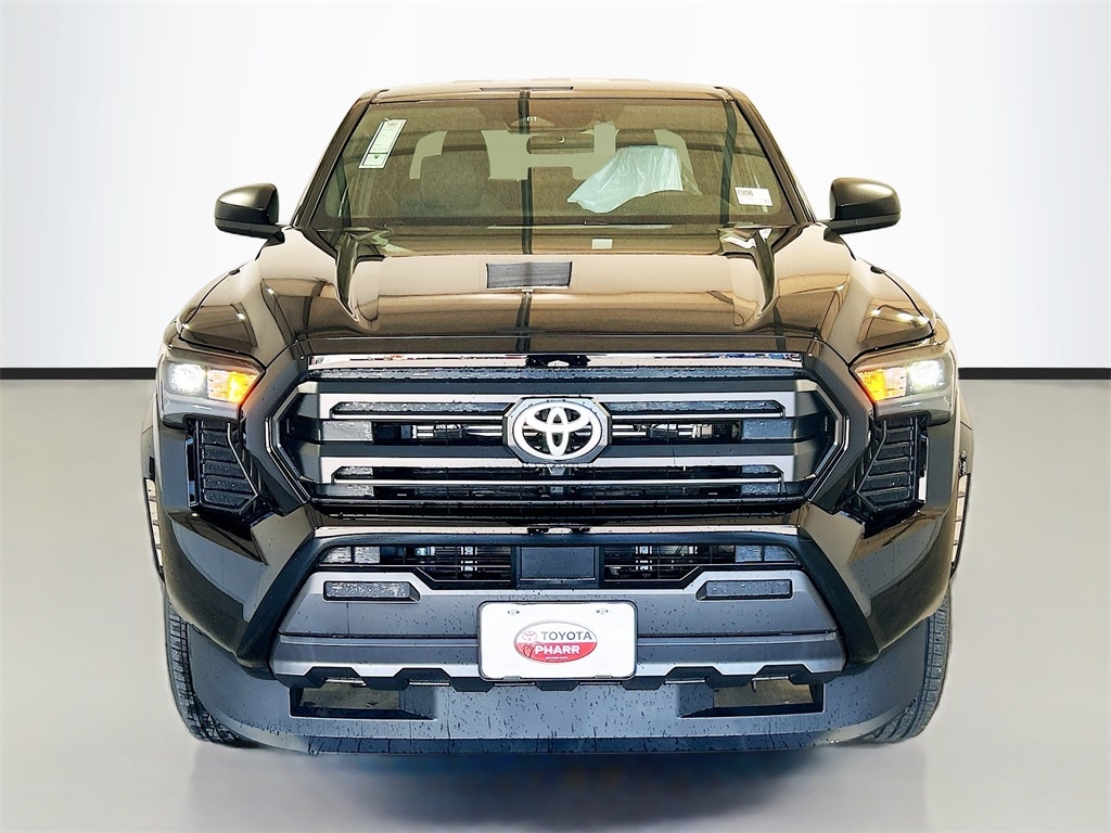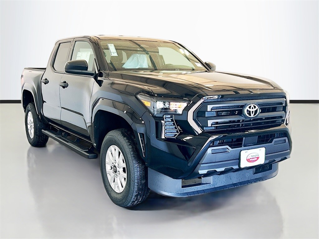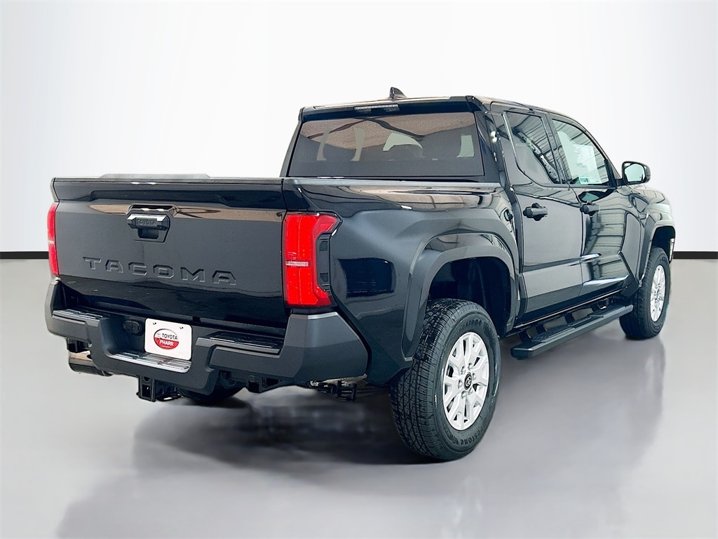 2026 Toyota Tacoma Black RWD SR 8-Speed Automatic 2.4L 4-Cylinder 3.583 Axle Ratio, 4-Wheel Disc Brakes, 6 Speakers, ABS brakes, Air Conditioning, Alloy wheels, AM/FM radio: SiriusXM, Anti-whiplash front head restraints, Apple CarPlay/Android Auto, Auto High-beam Headlights, Brake assist, Bumpers: body-color, Driver door bin, Dual front impact airbags, Dual front side impact airbags, Electronic Stability Control, Emergency communication system: Safety Connect (up to 10-year trial subscription), Exterior Parking Camera Rear, Fabric Seat Trim, Front anti-roll bar, Front Bucket Seats, Front Center Armrest, Front reading lights, Front wheel independent suspension, Fully automatic headlights, Heated door mirrors, Illuminated entry, Knee airbag, Low tire pressure warning, Occupant sensing airbag, Outside temperature display, Overhead airbag, Overhead console, Passenger door bin, Power door mirrors, Power steering, Power windows, Radio: 8" Toyota Audio Multimedia, Rear step bumper, Rear window defroster, Remote keyless entry, Speed control, Speed-sensing steering, Split folding rear seat, Spray-On Bed Liner (TMS), Steering wheel mounted audio controls, Tachometer, Telescoping steering wheel, Tilt steering wheel, Traction control, Trip computer, Variably intermittent wipers, Wheels: 17" Styled Alloy.