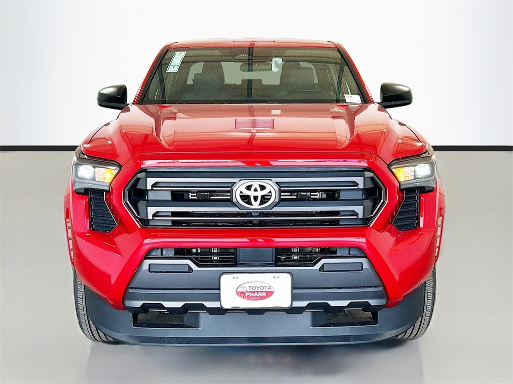 2026 Toyota Tacoma Supersonic Red RWD SR 8-Speed Automatic 2.4L 4-Cylinder 3.583 Axle Ratio, 4-Wheel Disc Brakes, 6 Speakers, ABS brakes, Air Conditioning, Alloy wheels, AM/FM radio: SiriusXM, Anti-whiplash front head restraints, Apple CarPlay/Android Auto, Auto High-beam Headlights, Brake assist, Bumpers: body-color, Driver door bin, Dual front impact airbags, Dual front side impact airbags, Electronic Stability Control, Emergency communication system: Safety Connect (up to 10-year trial subscription), Exterior Parking Camera Rear, Fabric Seat Trim, Front anti-roll bar, Front Bucket Seats, Front Center Armrest, Front reading lights, Front wheel independent suspension, Fully automatic headlights, Heated door mirrors, Illuminated entry, Knee airbag, Low tire pressure warning, Occupant sensing airbag, Outside temperature display, Overhead airbag, Overhead console, Passenger door bin, Power door mirrors, Power steering, Power windows, Radio: 8" Toyota Audio Multimedia, Rear step bumper, Rear window defroster, Remote keyless entry, Speed control, Speed-sensing steering, Split folding rear seat, Spray-on Bed Liner, Steering wheel mounted audio controls, Tachometer, Telescoping steering wheel, Tilt steering wheel, Traction control, Trip computer, Variably intermittent wipers, Wheels: 17" Styled Alloy.