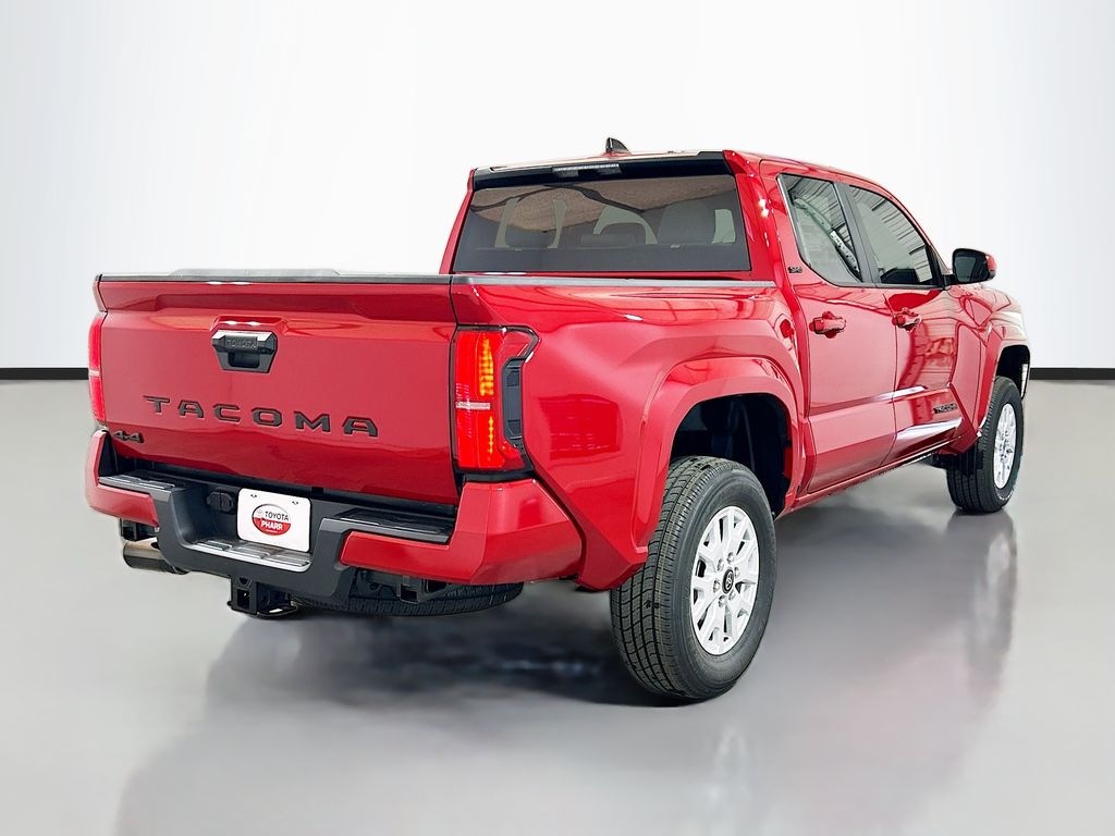 2026 Toyota Tacoma Supersonic Red 4WD SR5 8-Speed Automatic 2.4L 4-Cylinder 4WD, 3.583 Axle Ratio, 4-Wheel Disc Brakes, 6 Speakers, ABS brakes, Air Conditioning, Alloy wheels, AM/FM radio: SiriusXM, Anti-whiplash front head restraints, Apple CarPlay/Android Auto, Auto High-beam Headlights, Auto-dimming Rear-View mirror, Brake assist, Bumpers: body-color, Driver door bin, Dual front impact airbags, Dual front side impact airbags, Electronic Stability Control, Emergency communication system: Safety Connect (up to 10-year trial subscription), Exterior Parking Camera Rear, Fabric Seat Trim, Four wheel independent suspension, Front anti-roll bar, Front Bucket Seats, Front Center Armrest, Front fog lights, Front reading lights, Fully automatic headlights, Heated door mirrors, Illuminated entry, Knee airbag, Low tire pressure warning, Occupant sensing airbag, Outside temperature display, Overhead airbag, Overhead console, Panic alarm, Passenger door bin, Power door mirrors, Power steering, Power windows, Radio: 8" Toyota Audio Multimedia, Rear step bumper, Rear window defroster, Remote keyless entry, Speed control, Speed-sensing steering, Split folding rear seat, Spray-on Bed Liner, Steering wheel mounted audio controls, Tachometer, Telescoping steering wheel, Tilt steering wheel, Traction control, Trip computer, Variably intermittent wipers, Wheels: 17" Styled Alloy, 4WD.