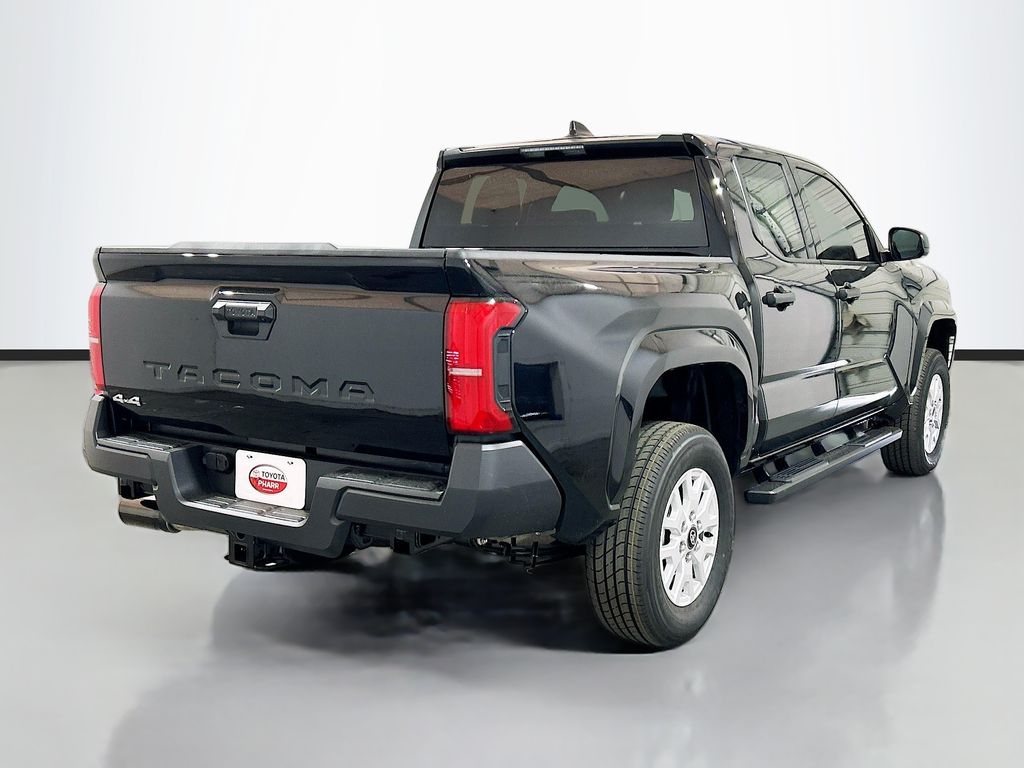 2026 Toyota Tacoma Black 4WD SR 8-Speed Automatic 2.4L 4-Cylinder 4WD, 3.583 Axle Ratio, 4-Wheel Disc Brakes, 6 Speakers, ABS brakes, Air Conditioning, Alloy wheels, AM/FM radio: SiriusXM, Anti-whiplash front head restraints, Apple CarPlay/Android Auto, Auto High-beam Headlights, Brake assist, Bumpers: body-color, Driver door bin, Dual front impact airbags, Dual front side impact airbags, Electronic Stability Control, Emergency communication system: Safety Connect (up to 10-year trial subscription), Exterior Parking Camera Rear, Fabric Seat Trim, Front anti-roll bar, Front Bucket Seats, Front Center Armrest, Front reading lights, Front wheel independent suspension, Fully automatic headlights, Heated door mirrors, Illuminated entry, Knee airbag, Low tire pressure warning, Occupant sensing airbag, Outside temperature display, Overhead airbag, Overhead console, Passenger door bin, Power door mirrors, Power steering, Power windows, Radio: 8" Toyota Audio Multimedia, Rear step bumper, Rear window defroster, Remote keyless entry, Speed control, Speed-sensing steering, Split folding rear seat, Spray-on Bed Liner, Steering wheel mounted audio controls, Tachometer, Telescoping steering wheel, Tilt steering wheel, Traction control, Trip computer, Variably intermittent wipers, Wheels: 17" Styled Alloy, 4WD.