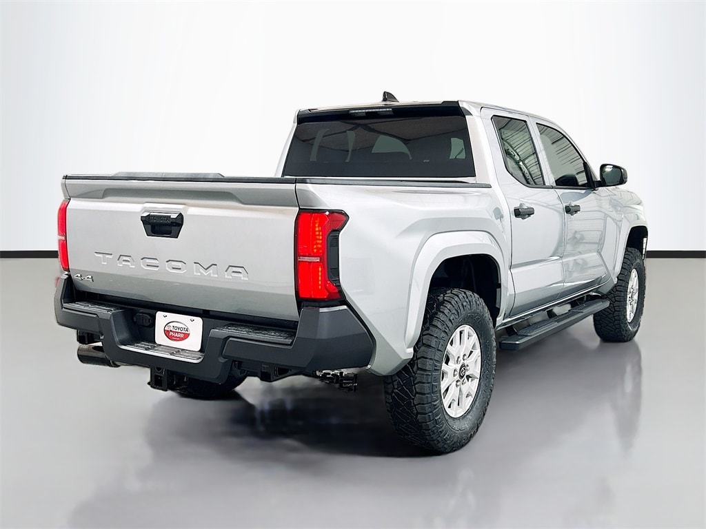 2026 Toyota Tacoma Celestial Silver Metallic 4WD SR 8-Speed Automatic 2.4L 4-Cylinder 4WD, 3.583 Axle Ratio, 4-Wheel Disc Brakes, 6 Speakers, ABS brakes, Air Conditioning, Alloy wheels, AM/FM radio: SiriusXM, Anti-whiplash front head restraints, Apple CarPlay/Android Auto, Auto High-beam Headlights, Brake assist, Bumpers: body-color, Driver door bin, Dual front impact airbags, Dual front side impact airbags, Electronic Stability Control, Emergency communication system: Safety Connect (up to 10-year trial subscription), Exterior Parking Camera Rear, Fabric Seat Trim, Front anti-roll bar, Front Bucket Seats, Front Center Armrest, Front reading lights, Front wheel independent suspension, Fully automatic headlights, Heated door mirrors, Illuminated entry, Knee airbag, Low tire pressure warning, Occupant sensing airbag, Outside temperature display, Overhead airbag, Overhead console, Passenger door bin, Power door mirrors, Power steering, Power windows, Radio: 8" Toyota Audio Multimedia, Rear step bumper, Rear window defroster, Remote keyless entry, Speed control, Speed-sensing steering, Split folding rear seat, Spray-on Bed Liner, Steering wheel mounted audio controls, Tachometer, Telescoping steering wheel, Tilt steering wheel, Traction control, Trip computer, Variably intermittent wipers, Wheels: 17" Styled Alloy, 4WD.