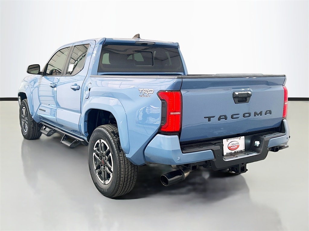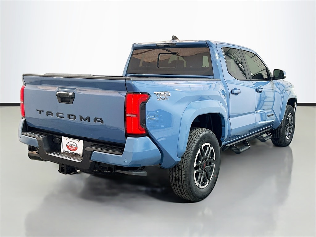 2026 Toyota Tacoma Heritage Blue RWD TRD Sport 8-Speed Automatic 2.4L 4-Cylinder 3.583 Axle Ratio, 4-Wheel Disc Brakes, 6 Speakers, ABS brakes, Air Conditioning, Alloy wheels, AM/FM radio: SiriusXM, Anti-whiplash front head restraints, Apple CarPlay/Android Auto, Auto High-beam Headlights, Auto-dimming Rear-View mirror, Automatic temperature control, Bed Step, Brake assist, Bumpers: body-color, Driver door bin, Driver vanity mirror, Dual front impact airbags, Dual front side impact airbags, Electronic Stability Control, Emergency communication system: Safety Connect (up to 10-year trial subscription), Exterior Parking Camera Rear, Fabric Seat Trim, Four wheel independent suspension, Front anti-roll bar, Front Bucket Seats, Front Center Armrest, Front fog lights, Front reading lights, Fully automatic headlights, Heated door mirrors, Illuminated entry, Knee airbag, Leather Shift Knob, Leather steering wheel, Low tire pressure warning, Occupant sensing airbag, Outside temperature display, Overhead airbag, Overhead console, Panic alarm, Passenger door bin, Passenger vanity mirror, Power door mirrors, Power steering, Power windows, Radio: 8" Toyota Audio Multimedia, Radio: Premium Audio with 14" Display, Rear step bumper, Rear window defroster, Remote keyless entry, Removable Predator Step, Security system, Speed control, Speed-sensing steering, Split folding rear seat, Spray-on Bed Liner, Steering wheel mounted audio controls, Tachometer, Telescoping steering wheel, Tilt steering wheel, Traction control, TRD Sport Package, Trip computer, Turn signal indicator mirrors, Variably intermittent wipers, Wheels: 18" TRD Sport Alloy.