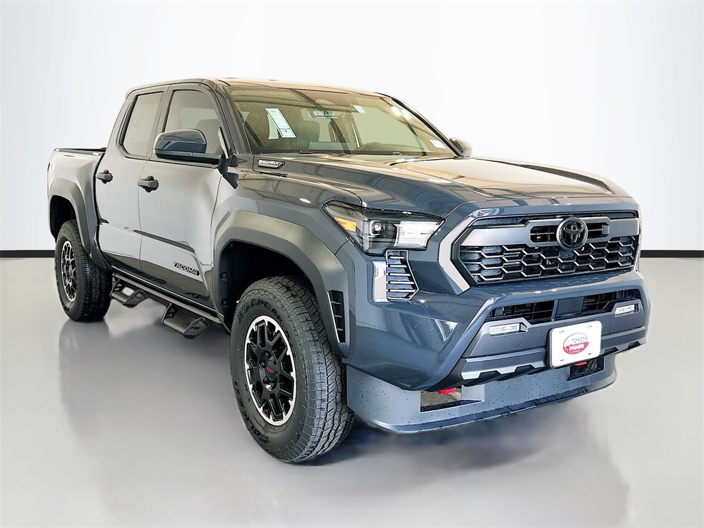 2026 Toyota Tacoma Hybrid Underground 4WD TRD Off Road 8-Speed Automatic 2.4L 4-Cylinder 2.4L 4-Cylinder, 18" Alloy Wheels, 3.583 Axle Ratio, 4-Wheel Disc Brakes, 6 Speakers, ABS brakes, Air Conditioning, Alloy wheels, AM/FM radio: SiriusXM, Anti-whiplash front head restraints, Apple CarPlay/Android Auto, Auto High-beam Headlights, Auto-dimming Rear-View mirror, Automatic temperature control, Brake assist, Bumpers: body-color, Driver door bin, Driver vanity mirror, Dual front impact airbags, Dual front side impact airbags, Electronic Stability Control, Emergency communication system: Safety Connect (up to 10-year trial subscription), Exterior Parking Camera Rear, Fabric Seat Trim, Four wheel independent suspension, Front anti-roll bar, Front Bucket Seats, Front Center Armrest, Front fog lights, Front reading lights, Front Recovery Hook, Fully automatic headlights, Heated door mirrors, Illuminated entry, JBL Premium Audio, Knee airbag, Leather Shift Knob, Leather steering wheel, Low tire pressure warning, Navigation system: Drive Connect Cloud Navigation (1-year trial subscription), Occupant sensing airbag, on-Off Front Stabilizer Disconnect Mechanism, Outside temperature display, Overhead airbag, Overhead console, Panic alarm, Passenger door bin, Passenger vanity mirror, Power door mirrors, Power steering, Power windows, Radio: 14" Toyota Audio Multimedia, Radio: 8" Toyota Audio Multimedia, Radio: Premium Audio with 14" Display, Rear step bumper, Rear window defroster, Remote keyless entry, Removable Predator Step, Security system, SofTex Seat Trim, Speed control, Speed-sensing steering, Split folding rear seat, Spray-on Bed Liner, Steering wheel mounted audio controls, Tachometer, Telescoping steering wheel, Tilt steering wheel, Traction control, TRD Off Road Package, Trip computer, Turn signal indicator mirrors, Variably intermittent wipers, 2.4L 4-Cylinder.