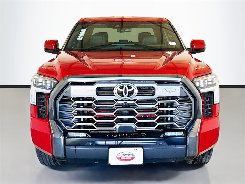 2026 Toyota Tundra Supersonic Red 4WD Platinum 10-Speed Automatic 3.4L V6 4WD, Black Leather, 10-Way Power Adjustable Heated and Ventilated Front Seats, 12 Speakers, 3.31 Axle Ratio, 4-Wheel Disc Brakes, ABS brakes, Air Conditioning, Alloy wheels, AM/FM radio: SiriusXM, Apple CarPlay/Android Auto, Auto High-beam Headlights, Auto-dimming door mirrors, Auto-dimming Rear-View mirror, Automatic temperature control, Brake assist, Bumpers: body-color, Carpet Floor Mats, Compass, Delay-off headlights, Driver door bin, Driver vanity mirror, Dual front impact airbags, Dual front side impact airbags, Electronic Stability Control, Emergency communication system: Safety Connect (up to 10-year trial subscription), Exterior Parking Camera Rear, Front anti-roll bar, Front Bucket Seats, Front Center Armrest, Front dual zone A/C, Front fog lights, Front reading lights, Front wheel independent suspension, Fully automatic headlights, Garage door transmitter: HomeLink, Head Up Display (HUD), Heated door mirrors, Heated front seats, Heated rear seats, Heated steering wheel, Illuminated entry, Knee airbag, Leather Shift Knob, Leather steering wheel, Low tire pressure warning, Memory seat, Navigation system: Drive Connect Cloud Navigation (1-year trial subscription), Occupant sensing airbag, Outside temperature display, Overhead airbag, Overhead console, Panic alarm, Passenger door bin, Passenger vanity mirror, Power door mirrors, Power driver seat, Power moonroof, Power passenger seat, Power Running Boards, Power steering, Power windows, Premium Leather Seat Trim, Radio data system, Radio: Premium Audio, Rain sensing wipers, Rear reading lights, Rear seat center armrest, Rear step bumper, Rear window defroster, Remote keyless entry, Safety Connect, Security system, Speed control, Speed-sensing steering, Speed-Sensitive Wipers, Split folding rear seat, Steering wheel memory, Steering wheel mounted audio controls, Tachometer, Telescoping steering wheel, Tilt steering wheel, Traction control, Trip computer, Turn signal indicator mirrors, Variably intermittent wipers, Ventilated front seats, Ventilated rear seats, Voltmeter, Wheels: 20" Dark Painted Alloy, 4WD, Black Leather. Price includes: $3000 - TMS Customer Cash . Exp. 03/02/2026