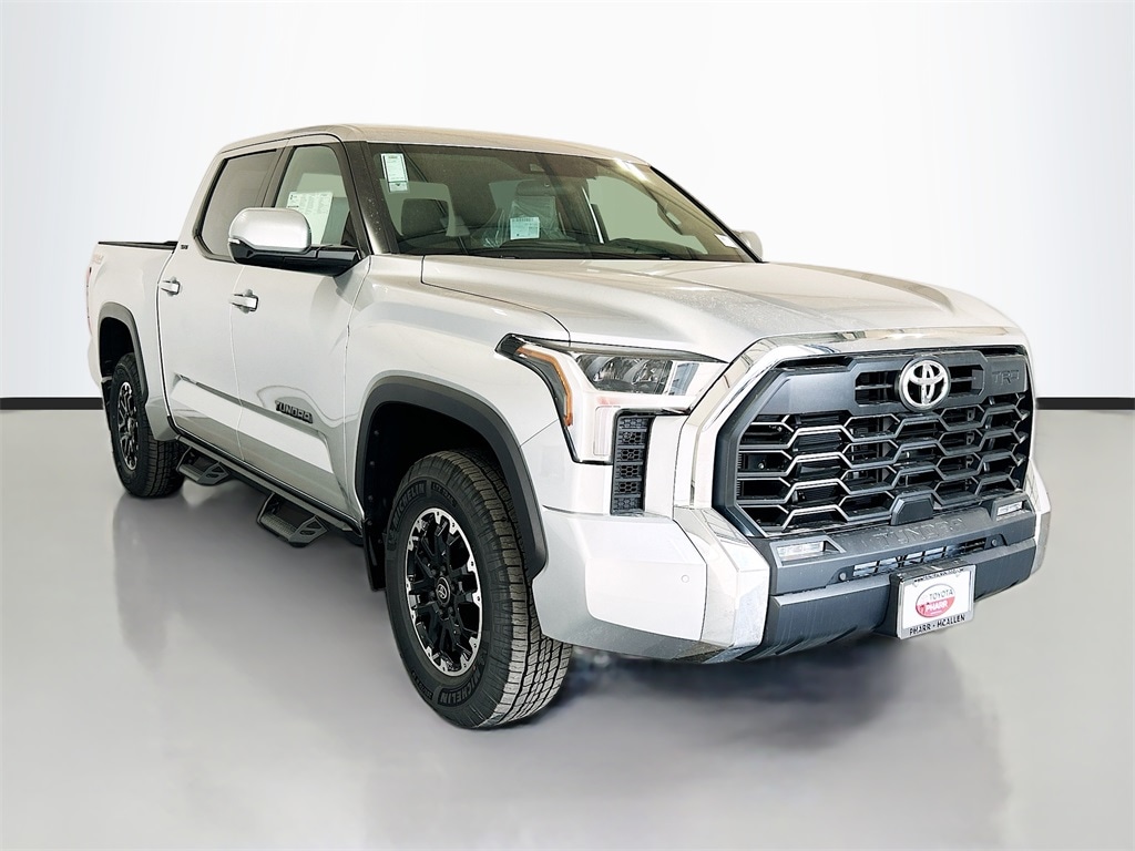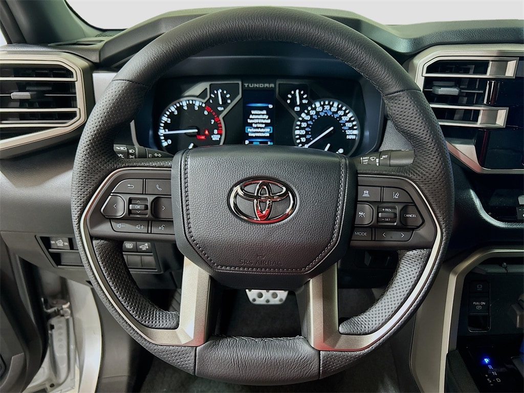 2026 Toyota Tundra Celestial Silver Metallic 4WD SR5 10-Speed Automatic 3.4L V6 4WD, Boulder Cloth, 18" Alloy Wheels, 20" Wheels, 3.31 Axle Ratio, 4-Way Manual Front Seats, 4-Wheel Disc Brakes, 9 Speakers, ABS brakes, Air Conditioning, Alloy wheels, AM/FM radio: SiriusXM, Apple CarPlay/Android Auto, Auto High-beam Headlights, Automatic temperature control, Bed Step, Brake assist, Bumpers: body-color, Delay-off headlights, Driver door bin, Driver vanity mirror, Dual front impact airbags, Dual front side impact airbags, Dual-Step Running Board - Black, Electronic Stability Control, Emergency communication system: Safety Connect (up to 10-year trial subscription), Exterior Parking Camera Rear, Fabric Seat Trim, Fabric Seat Trim (FB), Front anti-roll bar, Front Bucket Seats, Front Center Armrest, Front fog lights, Front reading lights, Front wheel independent suspension, Fully automatic headlights, Heated door mirrors, Illuminated entry, Knee airbag, Low tire pressure warning, Occupant sensing airbag, Outside temperature display, Overhead airbag, Overhead console, Panic alarm, Passenger door bin, Passenger vanity mirror, Power door mirrors, Power driver seat, Power steering, Power windows, Radio data system, Radio: Audio Multimedia System, Rear reading lights, Rear step bumper, Rear window defroster, Remote keyless entry, Safety Connect, Security system, Speed control, Speed-sensing steering, Split folding rear seat, Steering wheel mounted audio controls, SX Package, Tachometer, Telescoping steering wheel, Tilt steering wheel, Traction control, Trip computer, Variably intermittent wipers, Voltmeter, Wheels: 20" TRD Sport Alloy, 4WD, Boulder Cloth. Price includes: $3000 - TMS Customer Cash . Exp. 02/02/2026