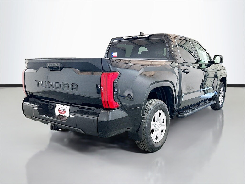 2026 Toyota Tundra Midnight Black Metallic 4WD SR 10-Speed Automatic 3.4L V6 4WD, Black Cloth, 18" Styled Steel Wheels, 3.31 Axle Ratio, 4-Way Manual Front Seats, 4-Wheel Disc Brakes, 9 Speakers, ABS brakes, Air Conditioning, AM/FM radio: SiriusXM, Apple CarPlay/Android Auto, Auto High-beam Headlights, Automatic temperature control, Brake assist, Bumpers: body-color, Carpet Floor Mats, Delay-off headlights, Driver door bin, Driver vanity mirror, Dual front impact airbags, Dual front side impact airbags, Electronic Stability Control, Emergency communication system: Safety Connect (up to 10-year trial subscription), Exterior Parking Camera Rear, Fabric Seat Trim, Front anti-roll bar, Front Bucket Seats, Front Center Armrest, Front reading lights, Front wheel independent suspension, Fully automatic headlights, Heated door mirrors, Illuminated entry, Knee airbag, Low tire pressure warning, Occupant sensing airbag, Outside temperature display, Overhead airbag, Overhead console, Panic alarm, Passenger door bin, Passenger vanity mirror, Power door mirrors, Power steering, Power windows, Radio data system, Radio: Audio Multimedia System, Rear reading lights, Rear step bumper, Rear window defroster, Remote keyless entry, Safety Connect, Security system, Speed control, Speed-sensing steering, Split folding rear seat, SR Package, Steering wheel mounted audio controls, Tachometer, Telescoping steering wheel, Tilt steering wheel, Traction control, Trip computer, Variably intermittent wipers, Voltmeter, 4WD, Black Cloth. Price includes: $3000 - TMS Customer Cash . Exp. 03/31/2026