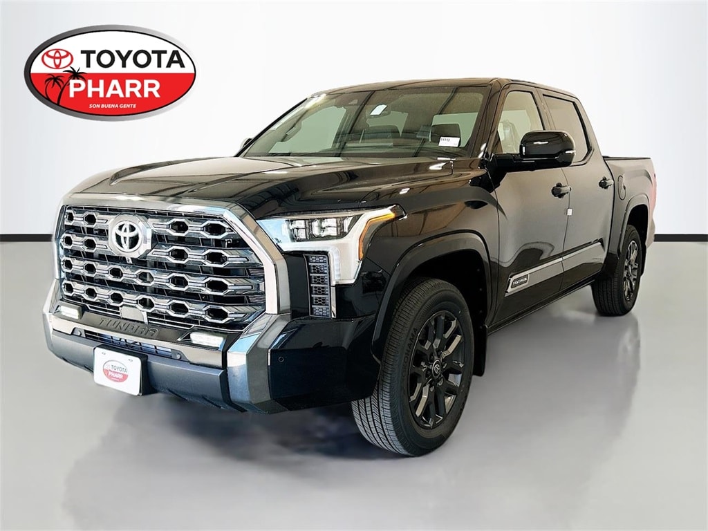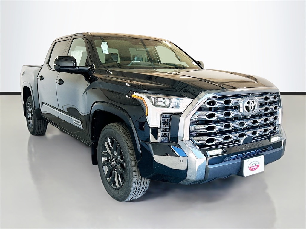 2026 Toyota Tundra Midnight Black Metallic 4WD Platinum 10-Speed Automatic 3.4L V6 4WD, Black Leather, 10-Way Power Adjustable Heated and Ventilated Front Seats, 12 Speakers, 3.31 Axle Ratio, 4-Wheel Disc Brakes, ABS brakes, Air Conditioning, Alloy wheels, AM/FM radio: SiriusXM, Apple CarPlay/Android Auto, Auto High-beam Headlights, Auto-dimming door mirrors, Auto-dimming Rear-View mirror, Automatic temperature control, Brake assist, Bumpers: body-color, Carpet Floor Mats, Compass, Delay-off headlights, Driver door bin, Driver vanity mirror, Dual front impact airbags, Dual front side impact airbags, Electronic Stability Control, Emergency communication system: Safety Connect (up to 10-year trial subscription), Exterior Parking Camera Rear, Front anti-roll bar, Front Bucket Seats, Front Center Armrest, Front dual zone A/C, Front fog lights, Front reading lights, Front wheel independent suspension, Fully automatic headlights, Garage door transmitter: HomeLink, Head Up Display (HUD), Heated door mirrors, Heated front seats, Heated rear seats, Heated steering wheel, Illuminated entry, Knee airbag, Leather Shift Knob, Leather steering wheel, Low tire pressure warning, Memory seat, Navigation system: Drive Connect Cloud Navigation (1-year trial subscription), Occupant sensing airbag, Outside temperature display, Overhead airbag, Overhead console, Panic alarm, Passenger door bin, Passenger vanity mirror, Power door mirrors, Power driver seat, Power moonroof, Power passenger seat, Power Running Boards, Power steering, Power windows, Premium Leather Seat Trim, Radio data system, Radio: Premium Audio, Rain sensing wipers, Rear reading lights, Rear seat center armrest, Rear step bumper, Rear window defroster, Remote keyless entry, Safety Connect, Security system, Speed control, Speed-sensing steering, Speed-Sensitive Wipers, Split folding rear seat, Steering wheel memory, Steering wheel mounted audio controls, Tachometer, Telescoping steering wheel, Tilt steering wheel, Traction control, Trip computer, Turn signal indicator mirrors, Variably intermittent wipers, Ventilated front seats, Ventilated rear seats, Voltmeter, Wheel Locks, Wheels: 20" Dark Painted Alloy, 4WD, Black Leather. Price includes: $3000 - TMS Customer Cash . Exp. 02/02/2026