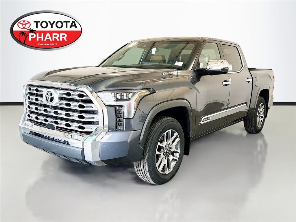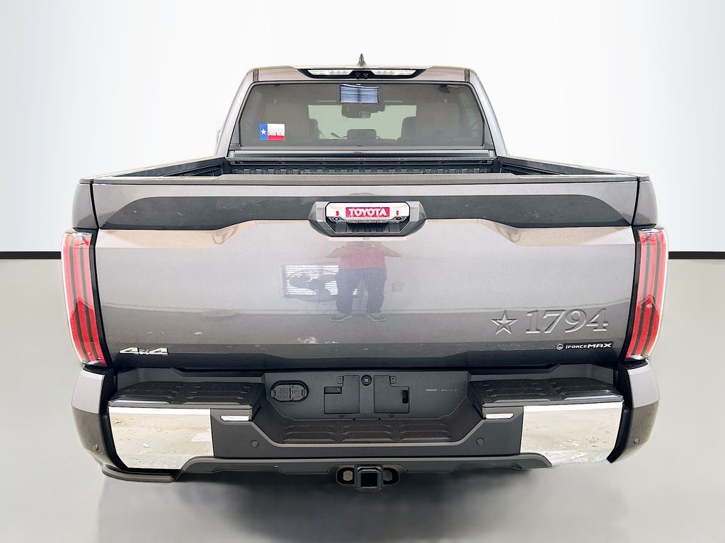 2026 Toyota Tundra Hybrid Magnetic Gray Metallic 4WD 1794 Edition 10-Speed Automatic 3.4L V6 3.4L V6, 10" Color Head-Up Display (HUD), 12 Speakers, 1794 Grade Package, 3.31 Axle Ratio, 4-Wheel Disc Brakes, ABS brakes, Air Conditioning, Alloy wheels, AM/FM radio: SiriusXM, Apple CarPlay/Android Auto, Auto High-beam Headlights, Auto-dimming door mirrors, Auto-dimming Rear-View mirror, Automatic temperature control, Blind Spot Monitor, Brake assist, Bumpers: body-color, Compass, Delay-off headlights, Driver door bin, Driver vanity mirror, Dual front impact airbags, Dual front side impact airbags, Electronic Stability Control, Emergency communication system: Safety Connect (up to 10-year trial subscription), Exterior Parking Camera Rear, Front anti-roll bar, Front Bucket Seats, Front Center Armrest, Front dual zone A/C, Front fog lights, Front reading lights, Front wheel independent suspension, Fully automatic headlights, Garage door transmitter: HomeLink, Heated and Ventilated Front Bucket Seats, Heated door mirrors, Heated front seats, Heated Power-Folding Chrome Plated Outside Mirrors, Heated rear seats, Heated steering wheel, Illuminated entry, Knee airbag, Leather Shift Knob, Leather steering wheel, Low tire pressure warning, Memory seat, Multi-Terrain Back Monitor, Navigation system: Drive Connect Cloud Navigation (1-year trial subscription), Occupant sensing airbag, Outside temperature display, Overhead airbag, Overhead console, Panic alarm, Panoramic View Monitor, Passenger door bin, Passenger vanity mirror, Power door mirrors, Power driver seat, Power moonroof, Power passenger seat, Power Running Boards, Power steering, Power windows, Premium Leather Seat Trim, Premium Paint, Radio data system, Radio: Premium Audio with JBL, Rain sensing wipers, Rear reading lights, Rear seat center armrest, Rear step bumper, Rear window defroster, Remote keyless entry, Security system, Speed control, Speed-sensing steering, Speed-Sensitive Wipers, Split folding rear seat, Steering wheel memory, Steering wheel mounted audio controls, Tachometer, Telescoping steering wheel, Tilt steering wheel, Traction control, Trip computer, Turn signal indicator mirrors, Variably intermittent wipers, Ventilated front seats, Ventilated rear seats, Voltmeter, Wheel Locks, Wheels: 20" Machined-Finish Alloy, 3.4L V6. Price includes: $3000 - TMS Customer Cash . Exp. 05/01/2026