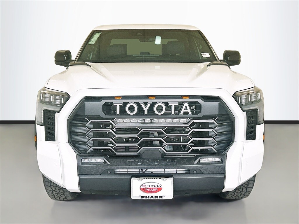 2026 Toyota Tundra Hybrid Ice Cap 4WD TRD Pro 10-Speed Automatic 3.4L V6 3.4L V6, 12 Speakers, 3.31 Axle Ratio, 4-Wheel Disc Brakes, ABS brakes, Air Conditioning, Alloy wheels, AM/FM radio: SiriusXM, Apple CarPlay/Android Auto, Auto High-beam Headlights, Auto-dimming door mirrors, Auto-dimming Rear-View mirror, Automatic temperature control, Bed Step, Brake assist, Bumpers: body-color, Delay-off headlights, Driver door bin, Driver vanity mirror, Dual front impact airbags, Dual front side impact airbags, Electronic Stability Control, Emergency communication system: Safety Connect (up to 10-year trial subscription), Exterior Parking Camera Rear, Front anti-roll bar, Front Bucket Seats, Front Center Armrest, Front dual zone A/C, Front fog lights, Front reading lights, Front wheel independent suspension, Fully automatic headlights, Garage door transmitter: HomeLink, Heated and Ventilated Front Bucket Seats, Heated door mirrors, Heated front seats, Illuminated entry, Knee airbag, Leather Shift Knob, Leather steering wheel, Low tire pressure warning, Memory seat, Navigation system: Drive Connect Cloud Navigation (1-year trial subscription), Occupant sensing airbag, Outside temperature display, Overhead airbag, Overhead console, Panic alarm, Passenger door bin, Passenger vanity mirror, Power door mirrors, Power driver seat, Power moonroof, Power passenger seat, Power steering, Power windows, Radio data system, Radio: Premium Audio with JBL, Rear reading lights, Rear seat center armrest, Rear step bumper, Rear window defroster, Remote keyless entry, Security system, SofTex Seat Trim, Speed control, Speed-sensing steering, Split folding rear seat, Sport steering wheel, Steering wheel mounted audio controls, Tachometer, Telescoping steering wheel, Tilt steering wheel, Traction control, TRD Cast Aluminum Running Board, TRD Pro Package, Trip computer, Turn signal indicator mirrors, Variably intermittent wipers, Ventilated front seats, Voltmeter, Wheel Locks, Wheels: 18" Black Forged Aluminum BBS, 3.4L V6.