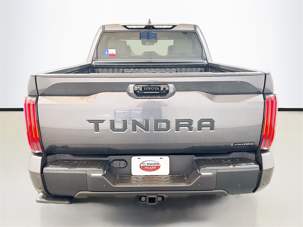 2026 Toyota Tundra Hybrid Magnetic Gray Metallic 4WD Limited 10-Speed Automatic 3.4L V6 3.4L V6, 20" Alloy Wheels, 3.31 Axle Ratio, 4-Wheel Disc Brakes, 400W/120V AC Rear Seat & Bed Power Supply, 9 Speakers, ABS brakes, Air Conditioning, Alloy wheels, AM/FM radio: SiriusXM, Apple CarPlay/Android Auto, Auto High-beam Headlights, Auto-dimming door mirrors, Auto-dimming Rear-View mirror, Automatic temperature control, Bed Step, Black Overfenders and Rear Bumper, Blind Spot Monitor, Brake assist, Bumpers: body-color, Delay-off headlights, Driver door bin, Driver vanity mirror, Dual front impact airbags, Dual front side impact airbags, Dual-Step Running Board - Black, Electronic Stability Control, Emergency communication system: Safety Connect (up to 10-year trial subscription), Exterior Parking Camera Rear, Front anti-roll bar, Front Bucket Seats, Front Center Armrest, Front dual zone A/C, Front fog lights, Front reading lights, Front wheel independent suspension, Fully automatic headlights, Garage door transmitter: HomeLink, Heated and Ventilated Front Bucket Seats, Heated door mirrors, Heated front seats, Heated Leather Steering Wheel, Heated Power-Folding Color-Keyed Outer Mirrors, Heated steering wheel, High Grade Full LED Headlamp, Illuminated entry, JBL Premium Audio, Knee airbag, Leather Seat Trim, Leather Shift Knob, Leather steering wheel, Limited Power Package, Limited Premium Package, Limited PVM Package, Low tire pressure warning, Memory seat, Multi-Terrain Back Monitor, Navigation system: Drive Connect Cloud Navigation (1-year trial subscription), Nightshade Package, Occupant sensing airbag, Outside temperature display, Overhead airbag, Overhead console, Panic alarm, Panoramic Sun Roof, Panoramic View Monitor, Passenger door bin, Passenger vanity mirror, Power door mirrors, Power driver seat, Power passenger seat, Power steering, Power windows, Qi-Compatible Wireless Smartphone Charging, Radio data system, Radio: Audio Plus, Rear reading lights, Rear seat center armrest, Rear step bumper, Rear window defroster, Remote keyless entry, Security system, Speed control, Speed-sensing steering, Split folding rear seat, Steering wheel mounted audio controls, Tachometer, Telescoping steering wheel, Tilt steering wheel, Towing Technology Package, Traction control, Trip computer, Turn signal indicator mirrors, Variably intermittent wipers, Ventilated front seats, Voltmeter, Wheels: 20" Matte-Black Alloy, 3.4L V6. Price includes: $3000 - TMS Customer Cash . Exp. 02/02/2026