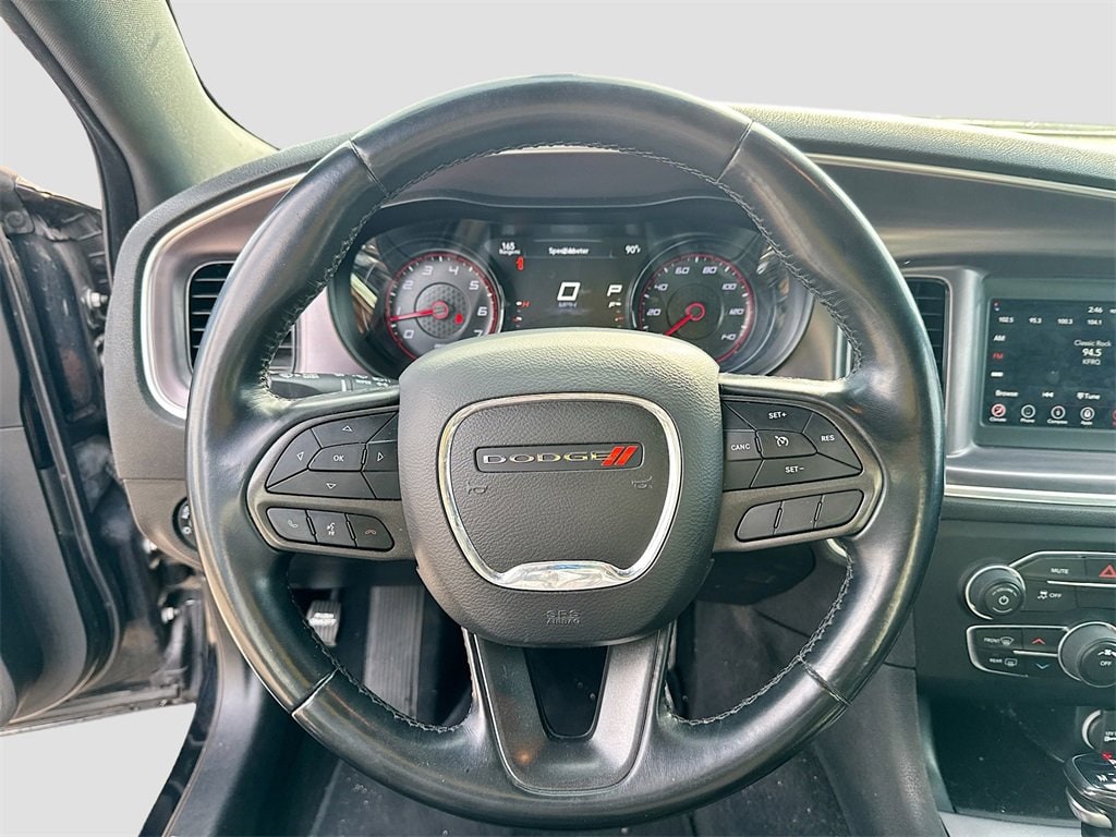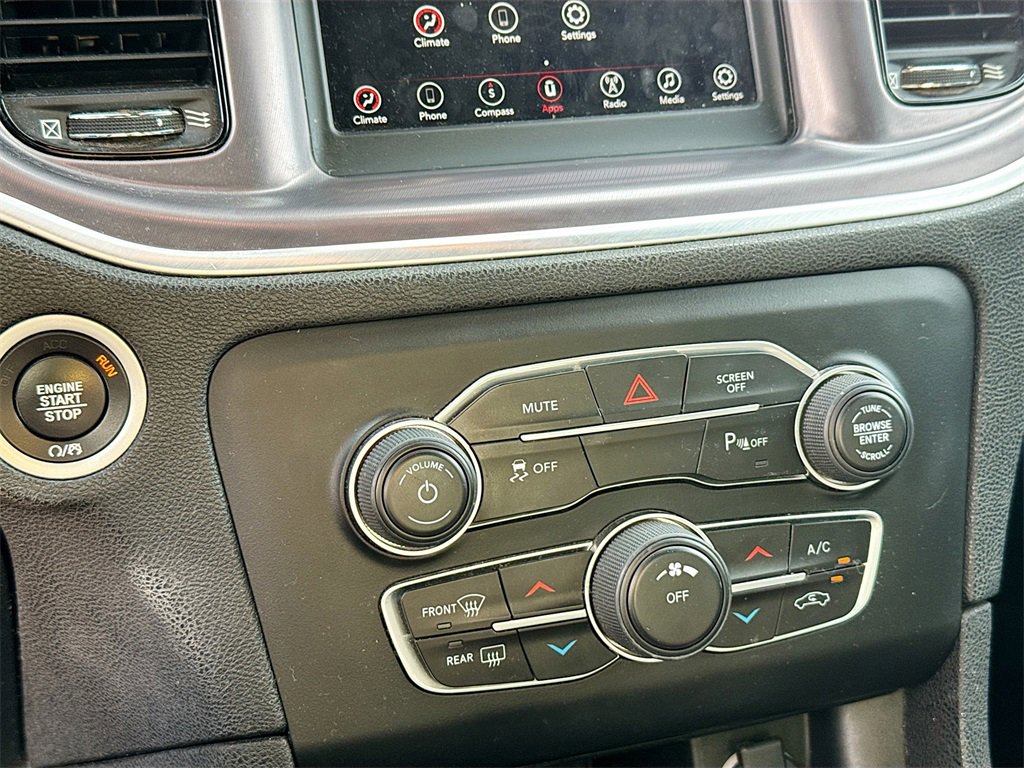 Black Cloth, 4-Wheel Disc Brakes, 6 Speakers, ABS brakes, Air Conditioning, Alloy wheels, AM/FM radio: SiriusXM, Anti-whiplash front head restraints, Apple CarPlay/Android Auto, Black 1-Piece Performance Spoiler, Blacktop Package (Fleet) (DISC), Brake assist, Bumpers: body-color, Cloth Sport Seat, Compass, Delay-off headlights, Dodge Grille Badge, Driver door bin, Driver vanity mirror, Dual front impact airbags, Dual front side impact airbags, Electronic Stability Control, Four wheel independent suspension, Front anti-roll bar, Front Bucket Seats, Front Center Armrest, Front dual zone A/C, Front License Plate Bracket, Front reading lights, Fully automatic headlights, Gloss Black Fascia Applique, Gloss Black I/P Cluster Trim Rings, Illuminated entry, Knee airbag, Leather Shift Knob, Low tire pressure warning, Occupant sensing airbag, Outside temperature display, Overhead airbag, Overhead console, Panic alarm, ParkView Rear Back-Up Camera, Passenger door bin, Passenger vanity mirror, Power door mirrors, Power driver seat, Power steering, Power windows, Quick Order Package 2EG, Radio: Uconnect 4 w/7 Display, Rear anti-roll bar, Rear Armrest w/Cupholder Seat, Rear reading lights, Rear seat center armrest, Rear window defroster, Remote keyless entry, Satin Black Charger Decklid Badge, Satin Black Dodge Tail Lamp Badge, Speed control, Speed-Sensitive Wipers, Split folding rear seat, Steering wheel mounted audio controls, Tachometer, Telescoping steering wheel, Tilt steering wheel, Traction control, Trip computer, Variably intermittent wipers, Wheels: 17 x 7.0 Painted Cast Aluminum, Black Cloth. Recent Arrival!