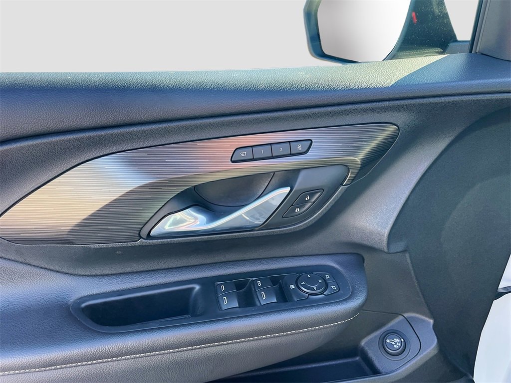 2 USB Data Ports, 2 USB Data Ports w/SD Card Reader, 3.47 Axle Ratio, 4-Wheel Disc Brakes, 6 Speakers, 6-Speaker Audio System Feature, 6-Way Power Front Passenger Seat, 8-Way Power Driver Seat Adjuster, ABS brakes, Air Conditioning, Alloy wheels, AM/FM radio: SiriusXM, Auto High-beam Headlights, Auto-dimming Rear-View mirror, Automatic temperature control, Bluetooth® For Phone, Brake assist, Bumpers: body-color, Compass, Delay-off headlights, Driver & Front Passenger Heated Seats, Driver door bin, Driver vanity mirror, Dual front impact airbags, Dual front side impact airbags, Electronic Stability Control, Emergency communication system: OnStar Guidance, Four wheel independent suspension, Front anti-roll bar, Front Bucket Seats, Front Center Armrest, Front dual zone A/C, Front fog lights, Front Passenger 2-Way Power Lumbar, Front reading lights, Fully automatic headlights, Garage door transmitter, Heated door mirrors, Heated front seats, Heated steering wheel, Hit The Road Package, Illuminated entry, License Plate Front Mounting Package, Low tire pressure warning, Memory seat, Molded Assist Steps, Occupant sensing airbag, Outside temperature display, Overhead airbag, Overhead console, Panic alarm, Passenger door bin, Passenger vanity mirror, Perforated Leather-Appointed Seat Trim, Power door mirrors, Power Driver Lumbar Control, Power driver seat, Power Liftgate, Power passenger seat, Power steering, Power windows, Preferred Equipment Group 4SA, Radio data system, Radio: GMC Infotainment Audio System w/8 Display, Rear anti-roll bar, Rear seat center armrest, Rear window defroster, Rear window wiper, Remote keyless entry, Roof Rack Cross Rails (LPO), Roof rack: rails only, Security system, SiriusXM Radio, Speed control, Speed-sensing steering, Split folding rear seat, Spoiler, Steering wheel mounted audio controls, Tachometer, Telescoping steering wheel, Tilt steering wheel, Traction control, Trip computer, Turn signal indicator mirrors, Variably intermittent wipers, Wheels: 18 x 7 Silver Painted Aluminum, Wireless Apple CarPlay/Wireless Android Auto.