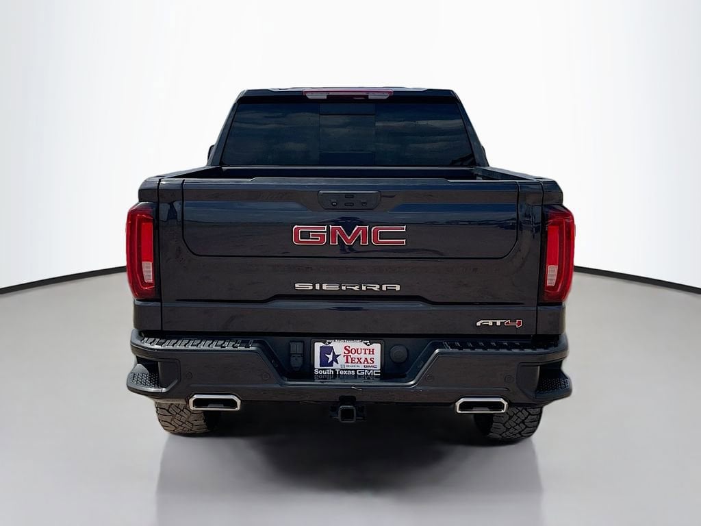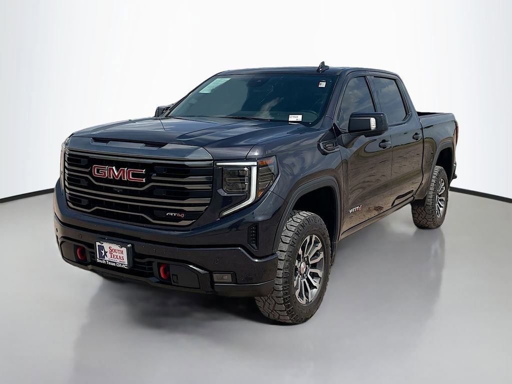 Clean CARFAX. Titanium Rush Metallic 2023 GMC Sierra 1500 AT4 4WD 10-Speed Automatic 3.0L I6WE ARE OPEN FOR ALL YOUR SALES AND SERVICE NEEDS! COMPLETE ONLINE BUYING EXPERIENCE AVAILABLE!CALL 956-661-5000 TO SCHEDULE YOUR CONTACT FREE TEST DRIVE TODAY!10-Speed Automatic, 4WD, Jet Black With Kalahari Accents Leather, 10-Way Power Driver Seat Adjuster w/Lumbar, 10-Way Power Passenger Seat Adjuster w/Lumbar, 120-Volt Bed Mounted Power Outlet, 120-Volt Instrument Panel Power Outlet, 18 x 8.5 Machined Aluminum Wheels, 2 Charge/Data USB Ports Inside Center Console, 2 Type-C Charge-Only Rear USB Ports, 2 USB Ports, 220 Amp Alternator, 3.23 Rear Axle Ratio, 4-Wheel Disc Brakes, 7 Speakers, ABS brakes, Adaptive Cruise Control, Air Conditioning, Alloy wheels, AM/FM radio, Apple CarPlay/Android Auto, AT4 Preferred Package, Auto High-beam Headlights, Auto-dimming door mirrors, Auto-dimming Rear-View mirror, Auto-Locking Rear Differential, Automatic Emergency Braking, Automatic temperature control, Black Chrome Header & Grille Insert Bars, Block heater, Brake assist, Buckle to Drive, Bumpers: body-color, Color-Keyed Carpeting Floor Covering, Compass, Deep-Tinted Glass, Delay-off headlights, Driver door bin, Driver Memory, Driver vanity mirror, Dual front impact airbags, Dual front side impact airbags, Electric Rear-Window Defogger, Electrical Steering Column Lock, Electronic Stability Control, Emergency communication system: OnStar and GMC connected services capable, Engine Block Heater, Floor-Mounted Center Console, Following Distance Indicator, Forward Collision Alert, Front anti-roll bar, Front Bucket Seats, Front Center Armrest, Front dual zone A/C, Front fog lights, Front License Plate Kit, Front Pedestrian Braking, Front Prem Floor Liners w/Removable Carpet Insert, Front Rainsensing Wipers, Front reading lights, Front wheel independent suspension, Fully automatic headlights, GMC Connected Access Capable, HD Surround Vision, Heated 2nd Row Outboard Seats, Heated door mirrors, Heated Driver & Front Outboard Passenger Seating, Heated front seats, Heated rear seats, Heated steering wheel, Heavy-Duty Air Filter, Hill Descent Control, Hitch Guidance, Hitch Guidance w/Hitch View, Illuminated entry, In-Vehicle Trailering App, Integrated Trailer Brake Controller, IntelliBeam Automatic High Beam On/Off, Keyless Open & Start, Lane Keep Assist w/Lane Departure Warning, LED Cargo Area Lighting, Low tire pressure warning, Memory seat, Navigation System, Not Equipped w/Steering Column Lock, Occupant sensing airbag, Off-Road Suspension, OnStar & GMC Connected Services Capable, Outside temperature display, Overhead airbag, Overhead console, Panic alarm, Passenger door bin, Passenger vanity mirror, Perforated Front Leather Seat Trim, Perimeter Lighting, Power Door Locks, Power door mirrors, Power driver seat, Power Front Passenger Windows w/Express Up/Down, Power Front Windows w/Driver Express Up/Down, Power passenger seat, Power Rake & Telescoping Steering Column, Power Rear Windows w/Express Down, Power Sliding Rear Window w/Rear Defogger, Power steering, Power Sunroof, Power windows, Preferred Equipment Group 4SB, Premium audio system: GMC Infotainment System, Premium Bose 7-Speaker Sound System, Push Button Start, Radio data system, Radio: Premium GMC Infotainment Audio System, Rain sensing wipers, Rear Cross Traffic Braking, Rear Pedestrian Detection, Rear Prem Floor Liners w/Removable Carpet Insert, Rear reading lights, Rear seat center armrest, Rear step bumper, Rear Underseat Storage (LPO), Rear Wheelhouse Liners, Rear window defroster, Red Recovery Hooks, Remote keyless entry, Remote Vehicle Starter System, Safety Alert Seat, Security system, SiriusXM w/360L, Speed control, Speed-sensing steering, Split folding rear seat, Spray-On Pickup Bed Liner w/AT4 Logo, Steering Wheel Audio Controls, Steering wheel mounted audio controls, Tachometer, Telescoping steering wheel, Theft Deterrent System (Unauthorized Entry), Tilt s