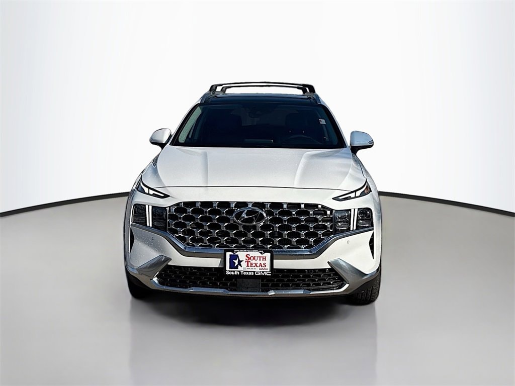 Clean CARFAX. CARFAX One-Owner. Serenity White Pearl 2023 Hyundai Santa Fe Limited AWD Shiftronic 2.5L I4WE ARE OPEN FOR ALL YOUR SALES AND SERVICE NEEDS! COMPLETE ONLINE BUYING EXPERIENCE AVAILABLE!CALL 956-661-5000 TO SCHEDULE YOUR CONTACT FREE TEST DRIVE TODAY!AWD, Black Leather, 12 Speakers, 4-Wheel Disc Brakes, ABS brakes, Air Conditioning, Alloy wheels, AM/FM radio: SiriusXM, Apple CarPlay & Android Auto, Auto High-beam Headlights, Auto-dimming Rear-View mirror, Automatic temperature control, Axle Ratio: 3.316, Brake assist, Bumpers: body-color, Cargo Net, Carpeted Floor Mats, Delay-off headlights, Driver door bin, Driver vanity mirror, Dual front impact airbags, Dual front side impact airbags, Electronic Stability Control, Emergency communication system, Exterior Parking Camera Rear, Four wheel independent suspension, Front anti-roll bar, Front Bucket Seats, Front Center Armrest, Front dual zone A/C, Front reading lights, Fully automatic headlights, Garage door transmitter: HomeLink, harman/kardon® Speakers, Heated & Ventilated Front Bucket Seats, Heated door mirrors, Heated front seats, Heated rear seats, Heated steering wheel, Illuminated entry, Leather Seat Trim, Leather steering wheel, Low tire pressure warning, Memory seat, Navigation System, Occupant sensing airbag, Option Group 01, Outside temperature display, Overhead airbag, Overhead console, Panic alarm, Passenger door bin, Passenger vanity mirror, Power door mirrors, Power driver seat, Power Liftgate, Power moonroof, Power passenger seat, Power steering, Power windows, Radio: AM/FM Harman Kardon Display Audio, Rain sensing wipers, Rear anti-roll bar, Rear seat center armrest, Rear window defroster, Rear window wiper, Remote keyless entry, Roof Rack Cross Bars (DISC), Security system, Speed control, Speed-sensing steering, Split folding rear seat, Spoiler, Steering wheel mounted audio controls, Tachometer, Telescoping steering wheel, Tilt steering wheel, Traction control, Trip computer, Turn signal indicator mirrors, Variably intermittent wipers, Ventilated front seats, Wheel Locks, Wheels: 19 x 7.5J Alloy, AWD, Black Leather.Odometer is 17775 miles below market average! 21/28 City/Highway MPG