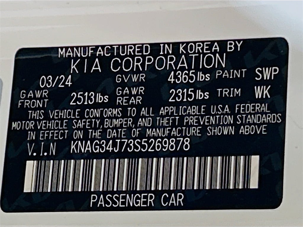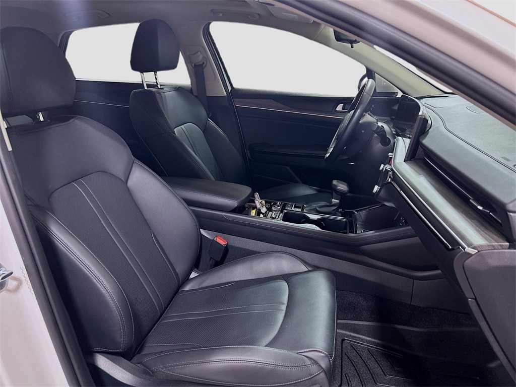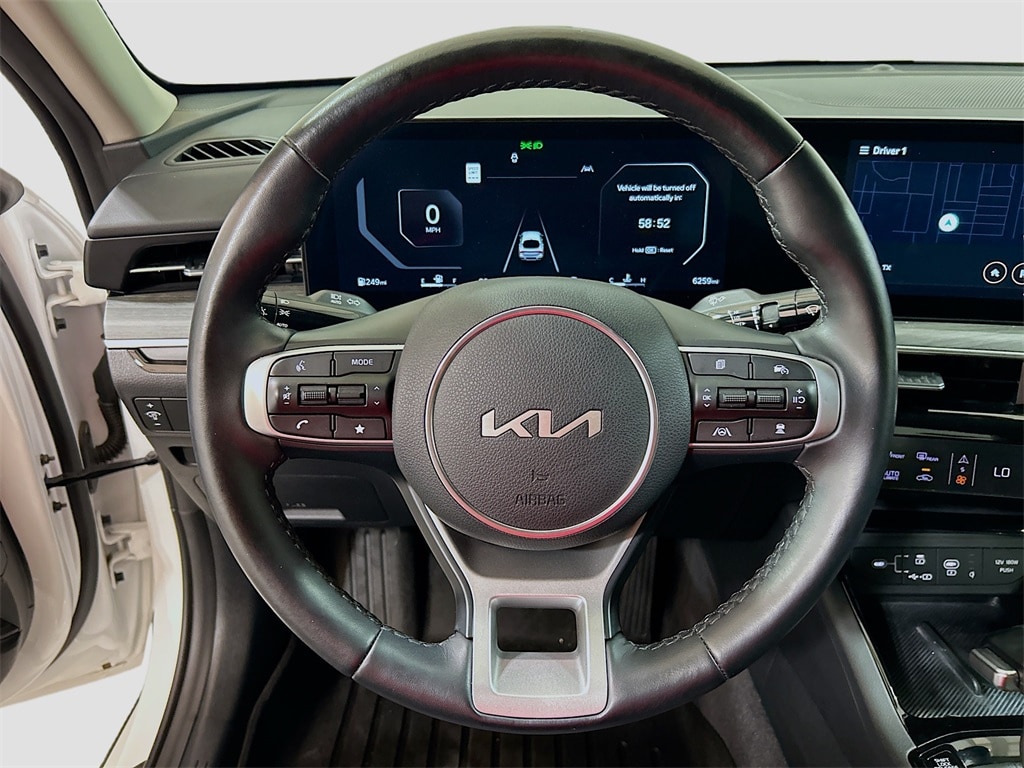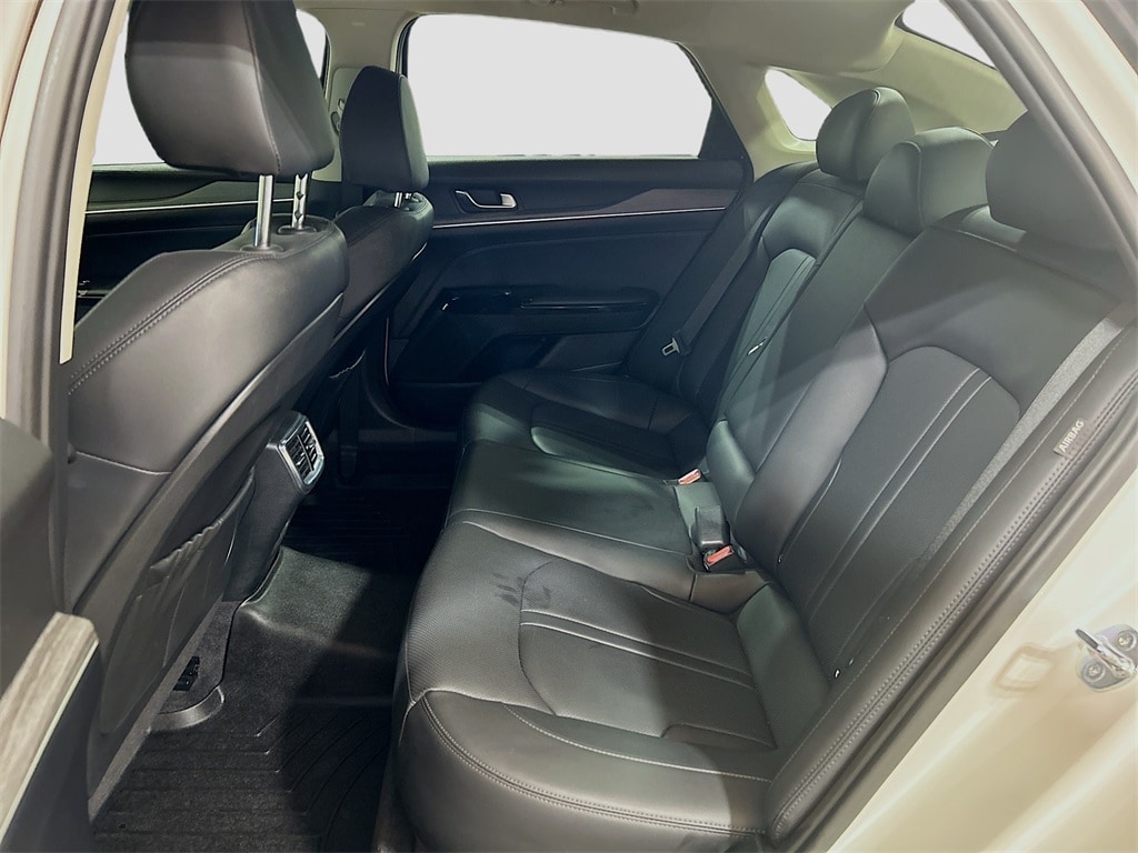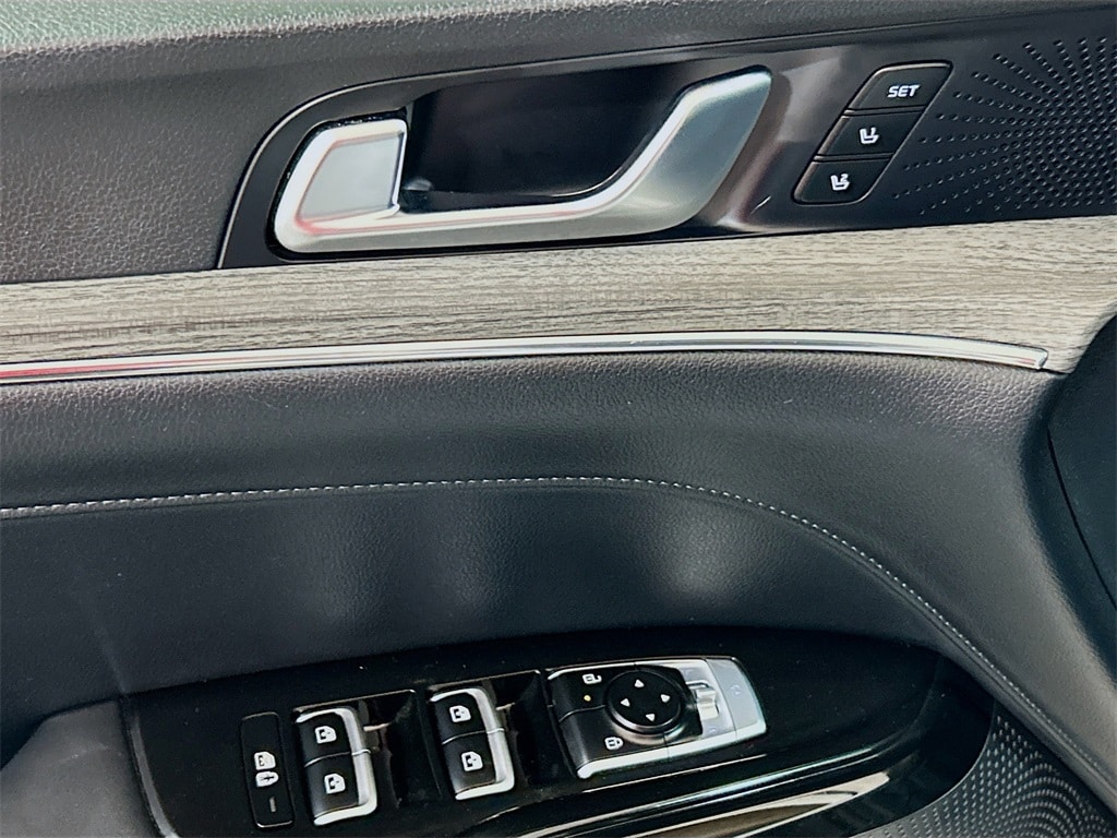 12 Speakers, 4-Wheel Disc Brakes, ABS brakes, Air Conditioning, Alloy wheels, AM/FM radio: SiriusXM, Auto High-beam Headlights, Automatic temperature control, Brake assist, Bumpers: body-color, Carpeted Floor Mats, Delay-off headlights, Driver door bin, Driver vanity mirror, Dual front impact airbags, Dual front side impact airbags, Electronic Stability Control, Emergency communication system: Kia Connect (includes 1 year free trial), Four wheel independent suspension, Front anti-roll bar, Front Bucket Seats, Front Center Armrest, Front dual zone A/C, Front reading lights, Fully automatic headlights, Heated & Ventilated Front Bucket Seats, Heated door mirrors, Heated front seats, Heated steering wheel, Illuminated entry, Knee airbag, Leather Shift Knob, Leather steering wheel, Low tire pressure warning, Memory seat, Navigation System, Occupant sensing airbag, Outside temperature display, Overhead airbag, Overhead console, Panic alarm, Passenger door bin, Passenger vanity mirror, Power door mirrors, Power driver seat, Power moonroof, Power passenger seat, Power steering, Power windows, Radio data system, Radio: AM/FM Audio System, Rear anti-roll bar, Rear reading lights, Rear seat center armrest, Rear side impact airbag, Rear window defroster, Remote keyless entry, Security system, Speed control, Speed-sensing steering, Split folding rear seat, Steering wheel mounted audio controls, SynTex Seat Trim, Tachometer, Telescoping steering wheel, Tilt steering wheel, Traction control, Trip computer, Turn signal indicator mirrors, Variably intermittent wipers, Ventilated front seats, Wheels: 18" x 7.5J Gloss Black Machined Finish Alloy.