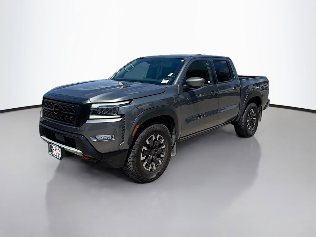 Clean CARFAX. Gun Metallic 2024 Nissan Frontier PRO-X RWD 9-Speed Automatic with Overdrive 3.8L DI DOHC 24V V6WE ARE OPEN FOR ALL YOUR SALES AND SERVICE NEEDS! COMPLETE ONLINE BUYING EXPERIENCE AVAILABLE!CALL 956-661-5000 TO SCHEDULE YOUR CONTACT FREE TEST DRIVE TODAY!17 Painted Alloy Wheels, 3.692 Axle Ratio, 4-Wheel Disc Brakes, 6 Speakers, ABS brakes, Air Conditioning, Alloy wheels, AM/FM radio: SiriusXM, Anti-whiplash front head restraints, Automatic temperature control, Blind Spot Warning, Brake assist, Bumpers: body-color, Compass, Delay-off headlights, Driver door bin, Driver vanity mirror, Dual front impact airbags, Dual front side impact airbags, Electronic Stability Control, Electronic Tailgate Lock, Emergency communication system, Fender Premium Audio System w/10 Speakers, Front anti-roll bar, Front Bucket Seats, Front Center Armrest, Front dual zone A/C, Front fog lights, Front reading lights, Front wheel independent suspension, Fully automatic headlights, High Beam Assist (HBA), Illuminated entry, Intelligent Cruise Control, Knee airbag, Lane Departure Warning System, Leather Shift Knob, Leather steering wheel, Low tire pressure warning, Navigation System, NissanConnect featuring Apple CarPlay and Android Auto, Occupant sensing airbag, Overhead airbag, Overhead console, Panic alarm, Passenger door bin, Passenger vanity mirror, Power door mirrors, Power driver seat, Power steering, Power windows, PRO Embroidered Premium Cloth Seat Trim, PRO-X Mud Flaps, Radio data system, Radio: 1CD/SXM/AM/FM/AUX/USB/MP3/WMA Audio System, Rear anti-roll bar, Rear Automatic Braking (RAB), Rear Cross Traffic Alert (RCTA), Rear seat center armrest, Rear side impact airbag, Rear Sonar System, Rear step bumper, Remote Engine Starter Accessory, Remote keyless entry, Security system, Speed control, Speed-sensing steering, Split folding rear seat, Steering wheel mounted audio controls, Tachometer, Technology Package, Tilt steering wheel, Traction control, Traffic Sign Recognition (TSR), Trip computer, Variably intermittent wipers, Voltmeter. Recent Arrival!
