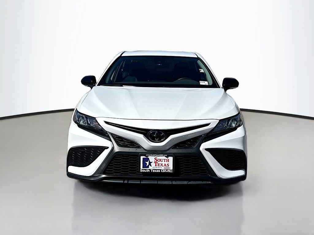 Clean CARFAX. Wind Chill Pearl 2023 Toyota Camry SE FWD 8-Speed Automatic 2.5L I4 DOHC 16VWE ARE OPEN FOR ALL YOUR SALES AND SERVICE NEEDS! COMPLETE ONLINE BUYING EXPERIENCE AVAILABLE!CALL 956-661-5000 TO SCHEDULE YOUR CONTACT FREE TEST DRIVE TODAY!Black w/Silver Performance w/Sport SofTex Seat Trim w/Fabric Inserts, 4-Wheel Disc Brakes, 6 Speakers, 8.0J x 18 Alloy Wheels, ABS brakes, Air Conditioning, Alloy wheels, AM/FM radio: SiriusXM, Apple CarPlay/Android Auto, Auto High-beam Headlights, Automatic temperature control, Brake assist, Bumpers: body-color, Delay-off headlights, Driver door bin, Driver vanity mirror, Dual front impact airbags, Dual front side impact airbags, Electronic Stability Control, Emergency communication system: Safety Connect (1-year trial), Exterior Parking Camera Rear, Four wheel independent suspension, Front anti-roll bar, Front Bucket Seats, Front Center Armrest, Front dual zone A/C, Front reading lights, Fully automatic headlights, Heated door mirrors, Illuminated entry, Knee airbag, Leather steering wheel, Low tire pressure warning, Occupant sensing airbag, Outside temperature display, Overhead airbag, Overhead console, Panic alarm, Passenger door bin, Passenger vanity mirror, Power door mirrors, Power driver seat, Power steering, Power windows, Radio data system, Radio: Audio, Rear anti-roll bar, Rear seat center armrest, Rear side impact airbag, Rear window defroster, Remote keyless entry, Security system, Speed control, Speed-sensing steering, Split folding rear seat, Spoiler, Sport SofTex Seat Trim w/Fabric Inserts, Steering wheel mounted audio controls, Tachometer, Telescoping steering wheel, Tilt steering wheel, Traction control, Trip computer, Turn signal indicator mirrors, Variably intermittent wipers, Black w/Silver Performance w/Sport SofTex Seat Trim w/Fabric Inserts. Recent Arrival!Odometer is 11237 miles below market average! 28/39 City/Highway MPG