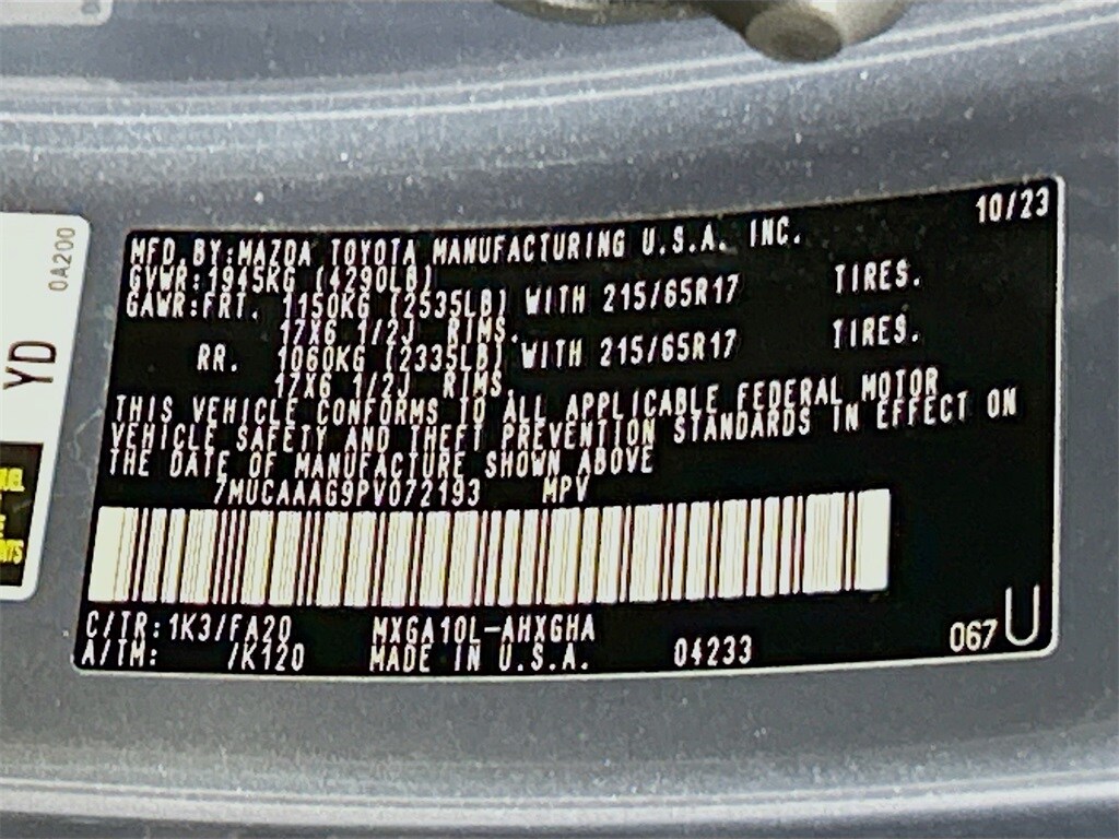 Toyota Certified, 17" Alloy Wheels, 4-Wheel Disc Brakes, 4.014 Axle Ratio, 6 Speakers, ABS brakes, Air Conditioning, Alloy wheels, AM/FM radio: SiriusXM, Auto High-beam Headlights, Automatic temperature control, Brake assist, Bumpers: body-color, Delay-off headlights, Driver door bin, Driver vanity mirror, Dual front impact airbags, Dual front side impact airbags, Electronic Stability Control, Emergency communication system: Safety Connect (10-year trial), Exterior Parking Camera Rear, Fabric Seat Trim, Front anti-roll bar, Front Bucket Seats, Front Center Armrest, Front reading lights, Front wheel independent suspension, Fully automatic headlights, Heated door mirrors, Illuminated entry, Knee airbag, Leather steering wheel, Low tire pressure warning, Occupant sensing airbag, Outside temperature display, Overhead airbag, Panic alarm, Passenger door bin, Passenger vanity mirror, Power door mirrors, Power steering, Power windows, Radio data system, Radio: 8" Toyota Multimedia, Rear anti-roll bar, Rear side impact airbag, Rear window defroster, Rear window wiper, Remote keyless entry, Roof rack: rails only, Speed control, Split folding rear seat, Spoiler, Steering wheel mounted audio controls, Tachometer, Telescoping steering wheel, Tilt steering wheel, Traction control, Trip computer, Turn signal indicator mirrors, Variably intermittent wipers.