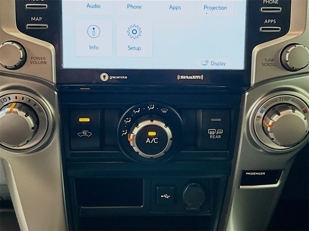 Black/Graphite w/Fabric Seat Trim, 3.727 Axle Ratio, 4-Wheel Disc Brakes, 8 Speakers, ABS brakes, Air Conditioning, Alloy wheels, AM/FM radio: SiriusXM, Anti-whiplash front head restraints, Apple CarPlay/Android Auto, Auto High-beam Headlights, Black Roof Rails, Brake assist, Bumpers: body-color, Driver door bin, Driver vanity mirror, Dual front impact airbags, Dual front side impact airbags, Electronic Stability Control, Emergency communication system: Safety Connect (1-year trial), Exterior Parking Camera Rear, Front anti-roll bar, Front Bucket Seats, Front Center Armrest, Front fog lights, Front reading lights, Front wheel independent suspension, Heated door mirrors, Illuminated entry, Knee airbag, Leather Shift Knob, Leather steering wheel, Low tire pressure warning, Occupant sensing airbag, Outside temperature display, Overhead airbag, Overhead console, Panic alarm, Passenger door bin, Passenger vanity mirror, Power door mirrors, Power driver seat, Power steering, Power windows, Radio: Audio, Rear anti-roll bar, Rear seat center armrest, Rear window defroster, Rear window wiper, Remote keyless entry, Security system, Shift Knob, SofTex Seat Trim, Speed control, Speed-sensing steering, Split folding rear seat, Spoiler, Steering wheel mounted audio controls, Tachometer, Telescoping steering wheel, Tilt steering wheel, Traction control, TRD Sport Badge, TRD Sport Carpet Floor Mats, Trip computer, Variably intermittent wipers, Wheels: 20" Unique Dual 6-Spoke Alloy, Black/Graphite w/Fabric Seat Trim.